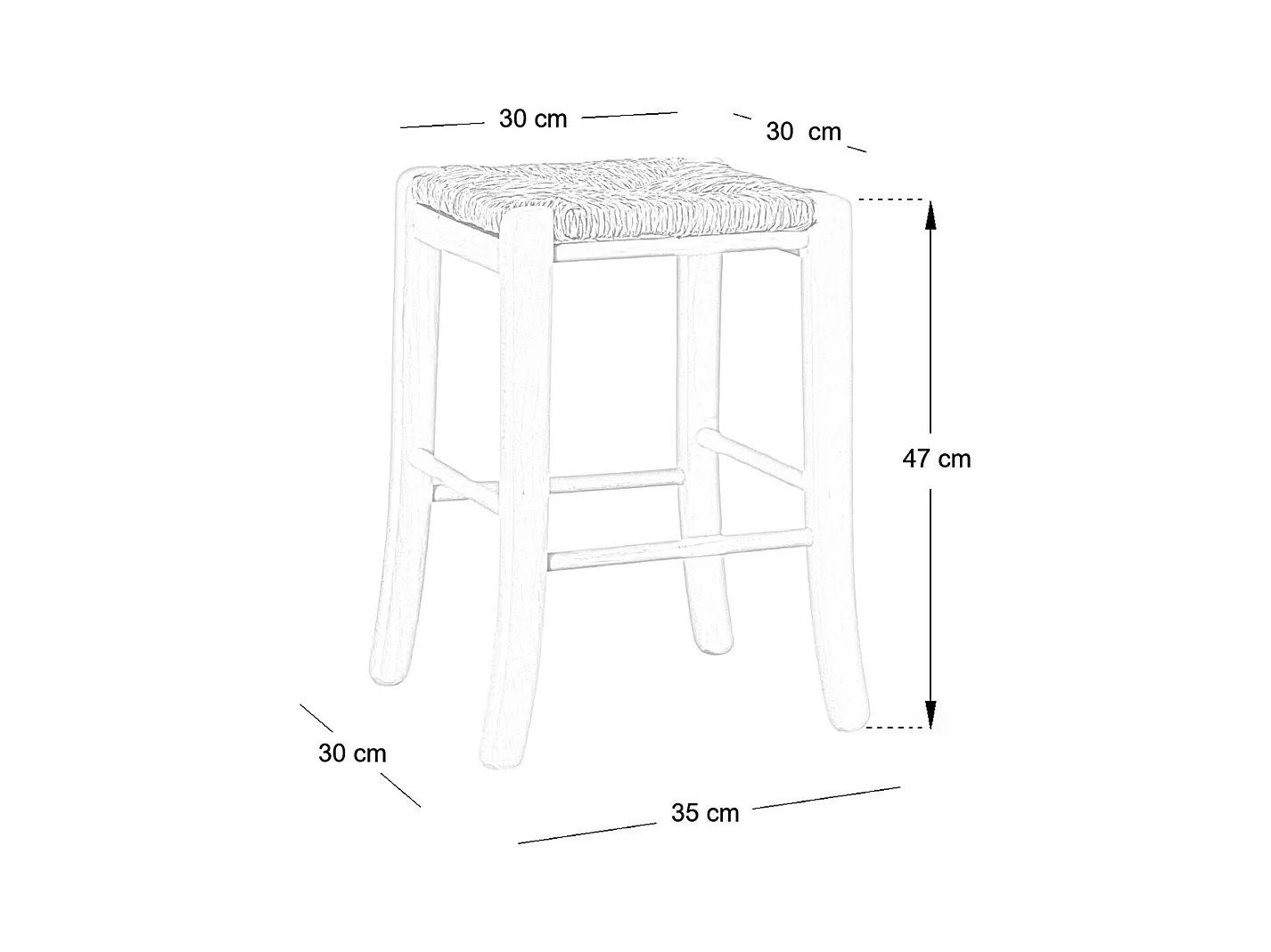Tabouret avec poignée dans le dossier h cm 66 brut avec assise en paille des marais