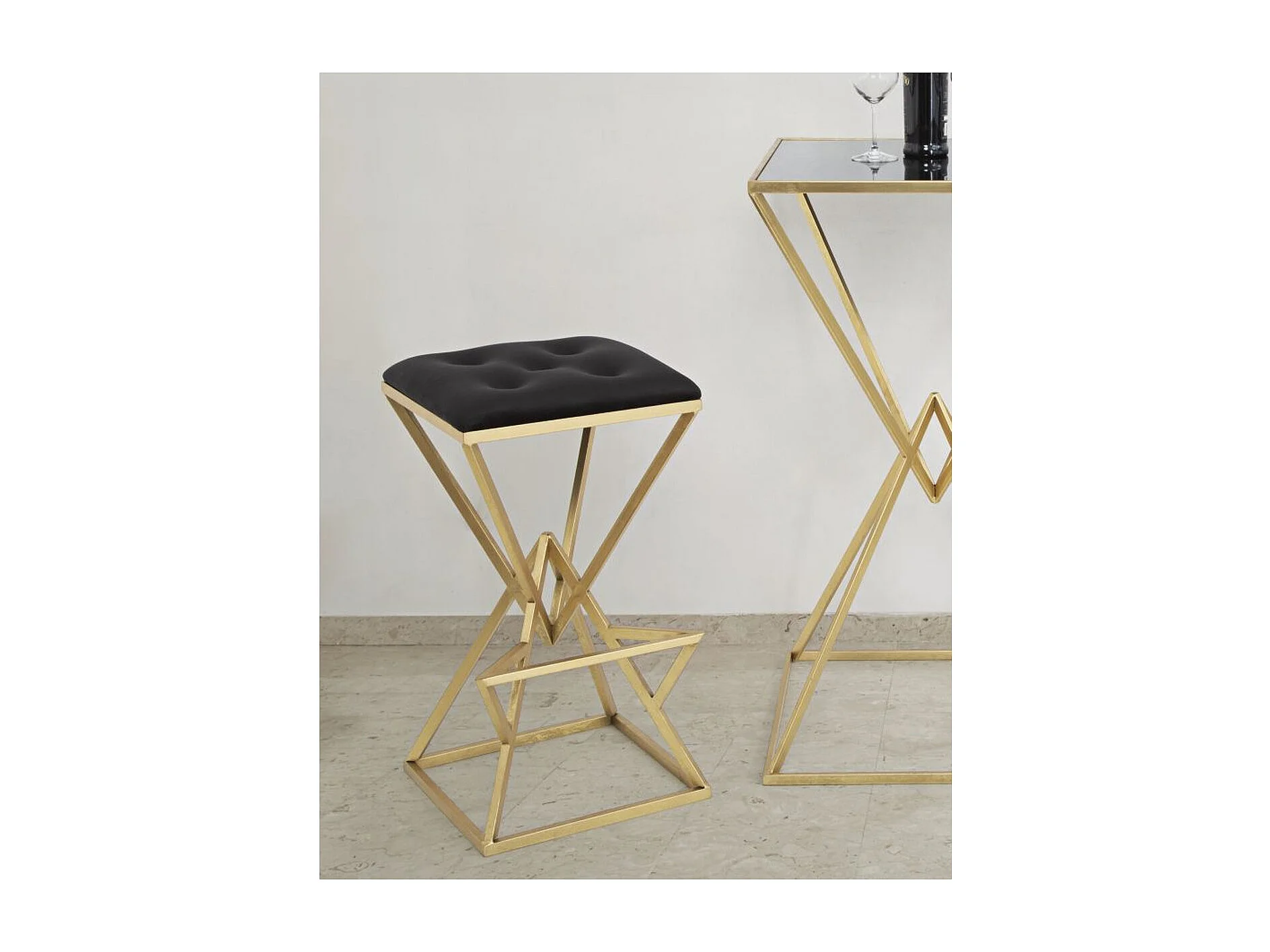 Tabouret Bas Triangles, Or, 40x40x75 cm, Kendra Home