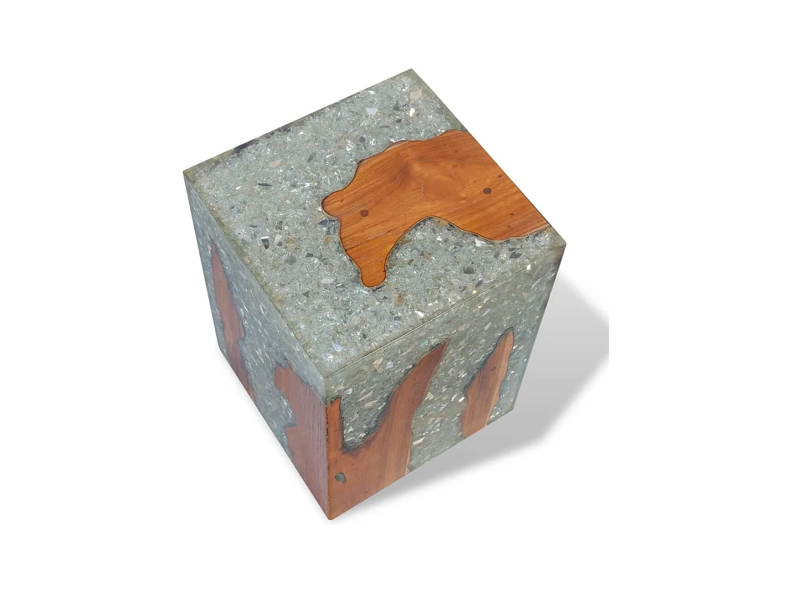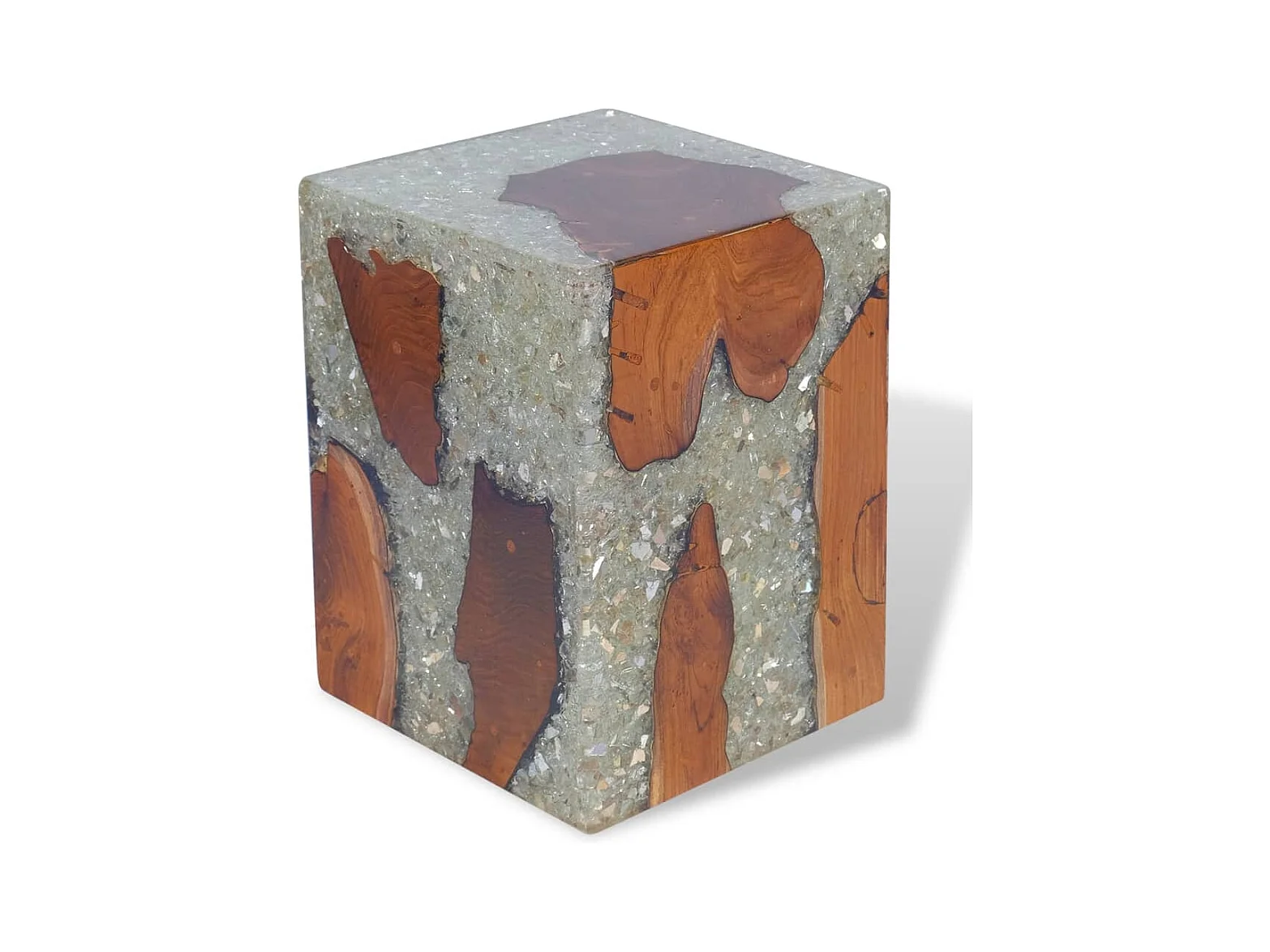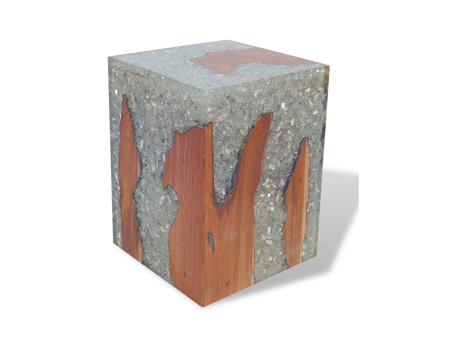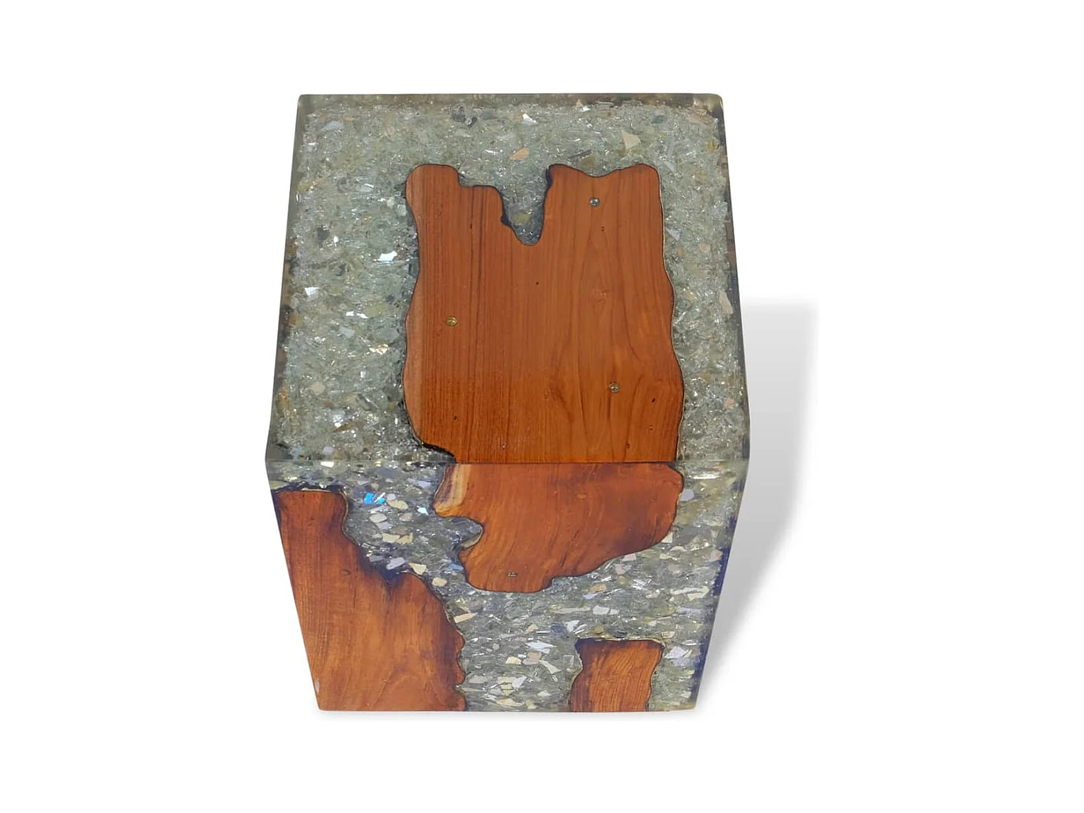 Tabouret en bois de manguier peint à la main avec détails multicolores