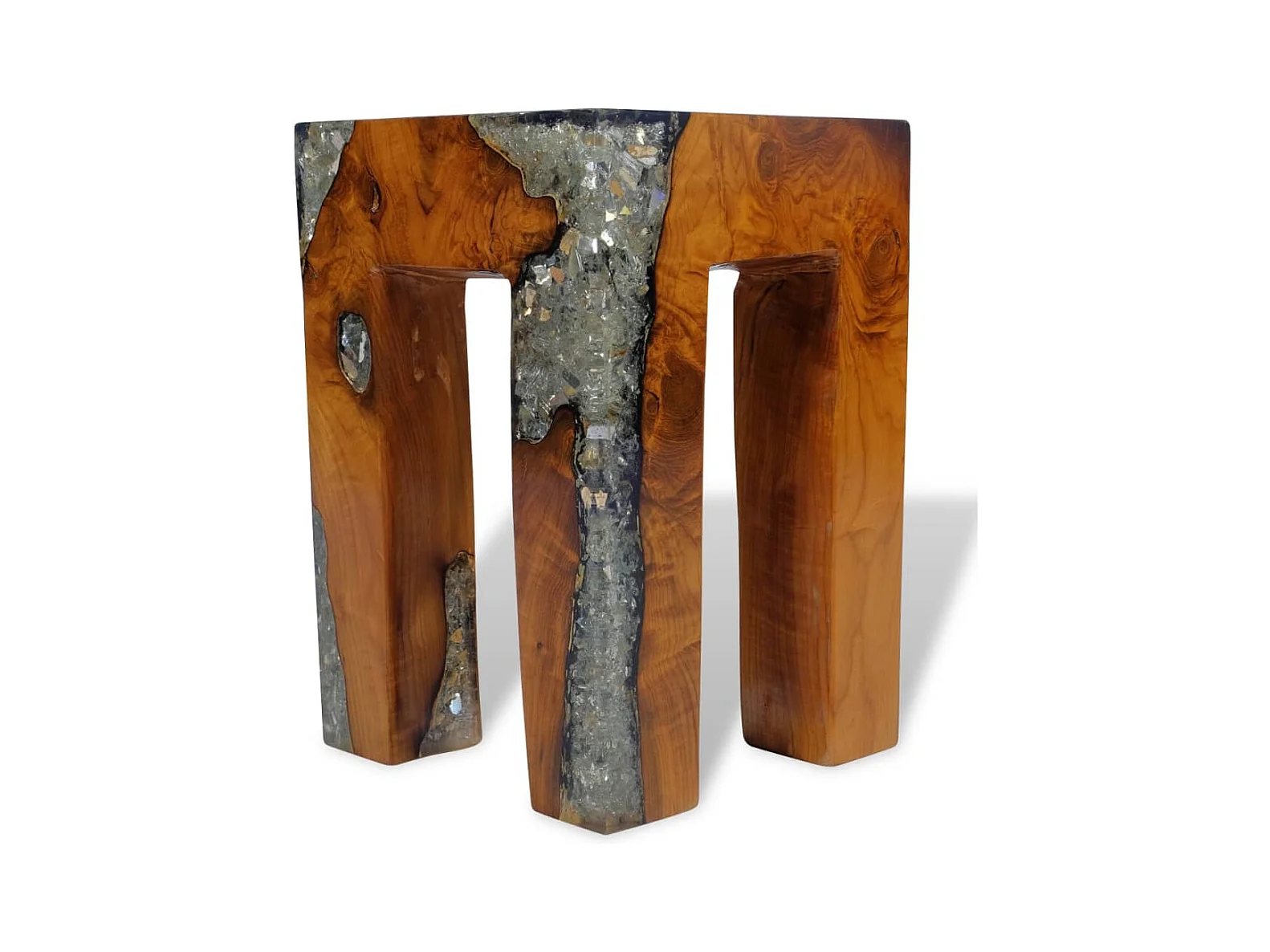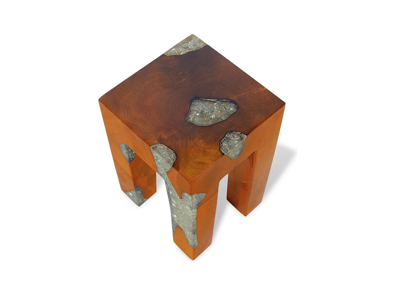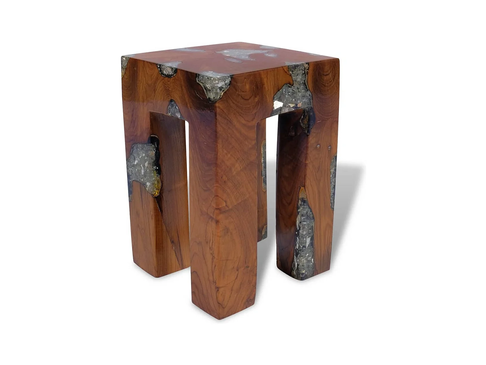 Tabouret en bois de manguier peint à la main avec détails multicolores