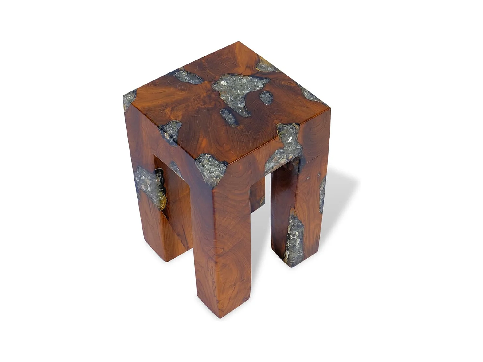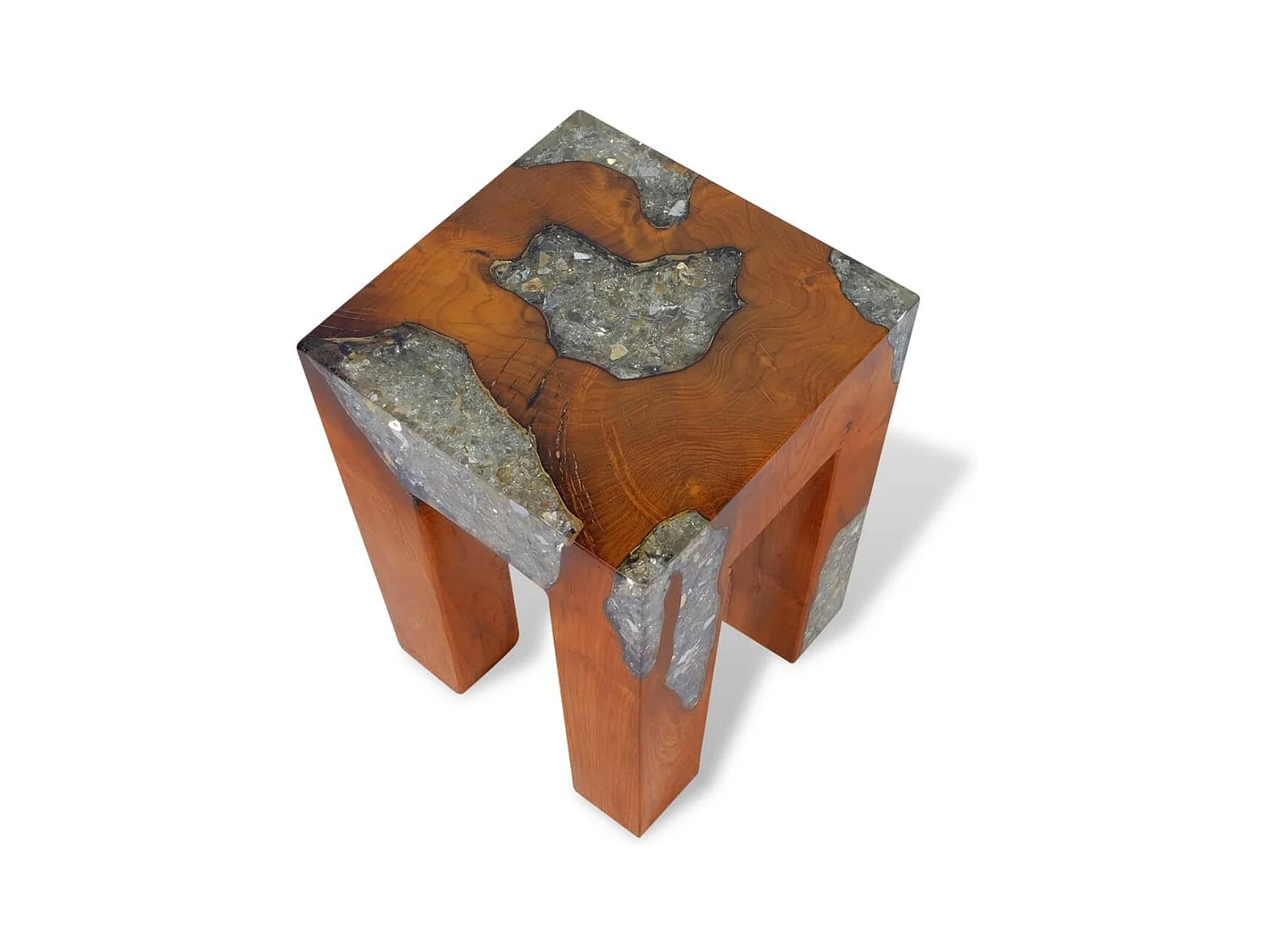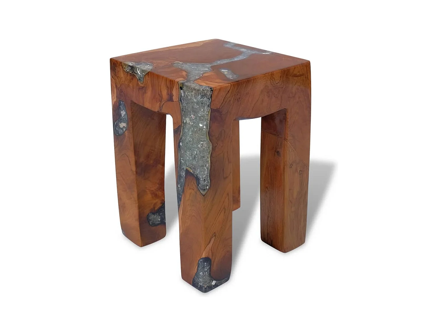 Tabouret en bois de manguier peint à la main avec détails multicolores