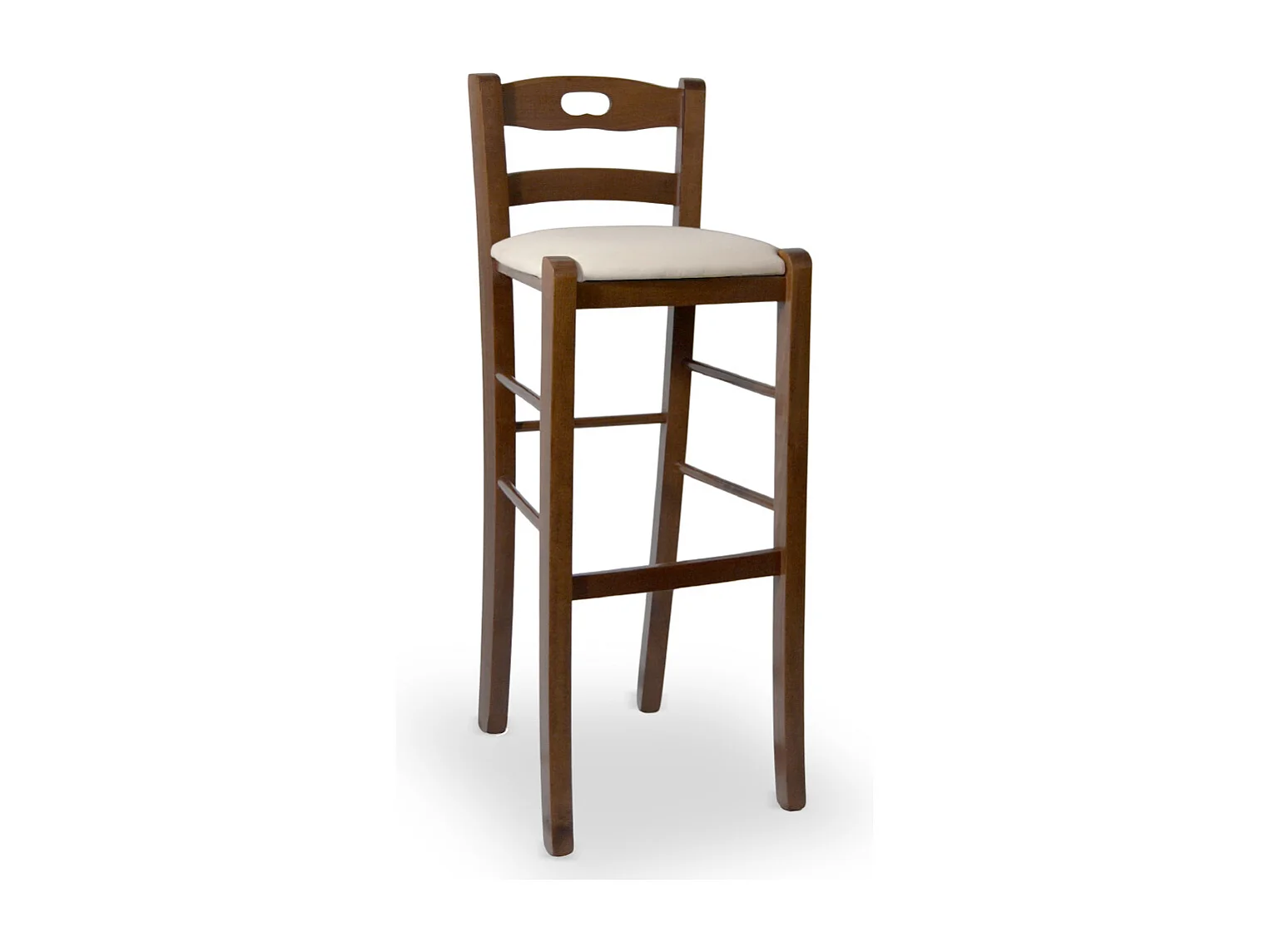 Tabouret en bois h66cm avec dossier avec poignée avec assise en noyer clair massif
