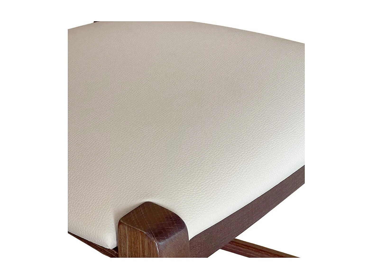 Tabouret de 80 cm de haut en bois de noyer foncé avec poignée et assise rembourrée en similicuir beige