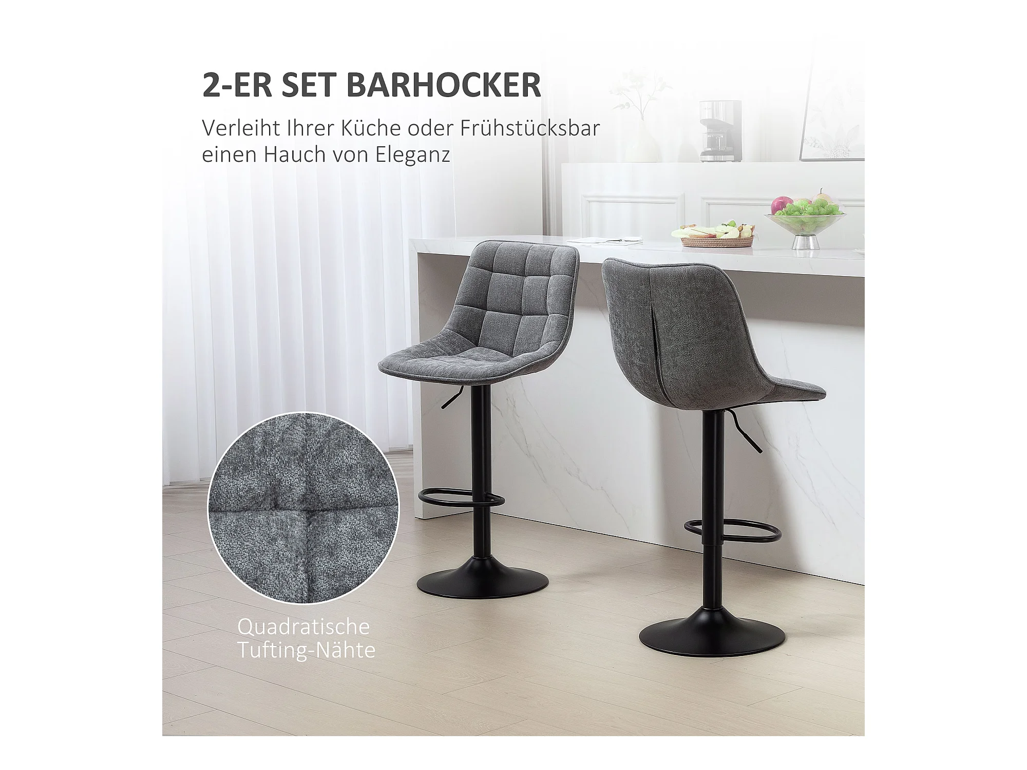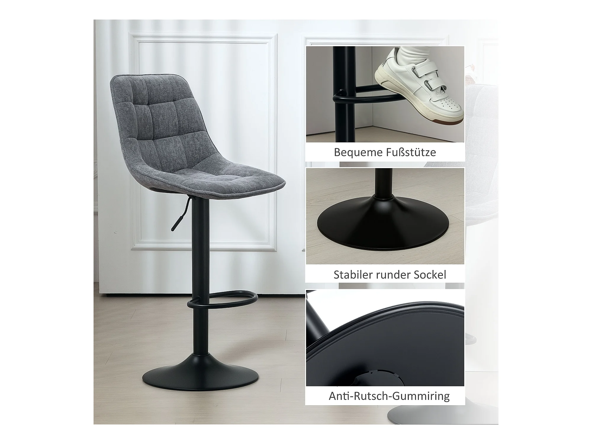 Tabouret de bar réglable en hauteur - tissu - gris - LIND