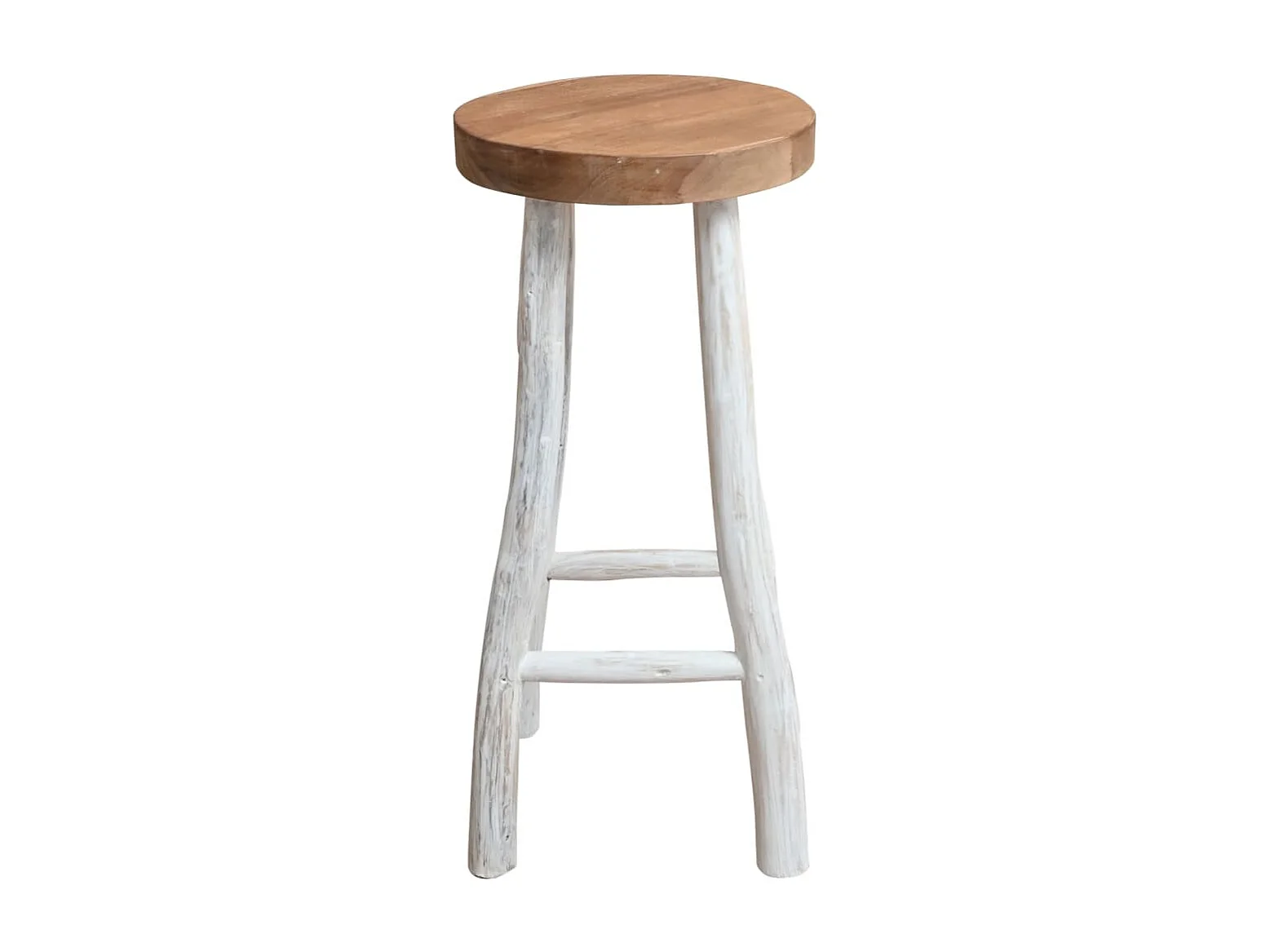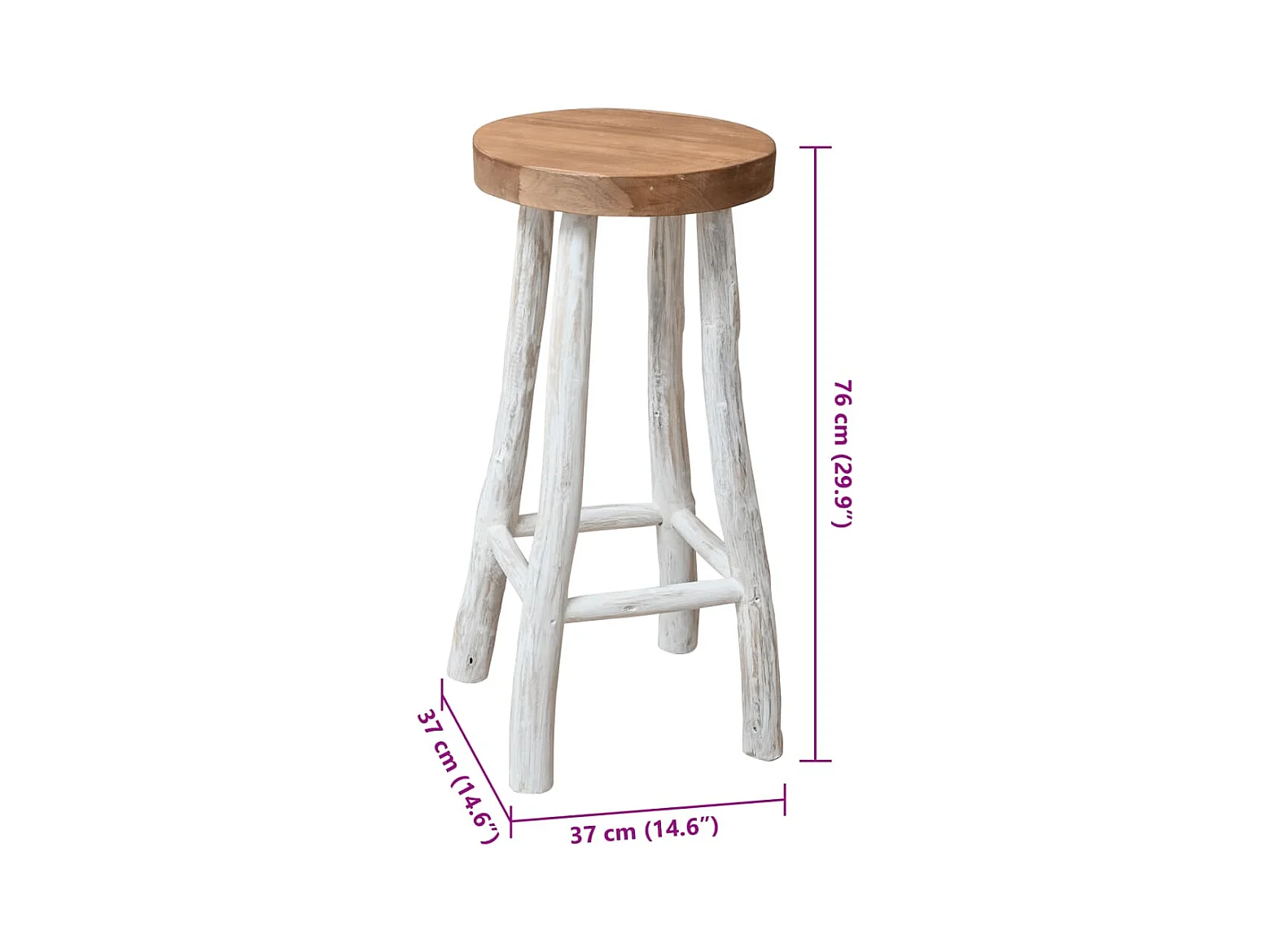 Tabouret de bar cuir de chèvre et bois de teck solide