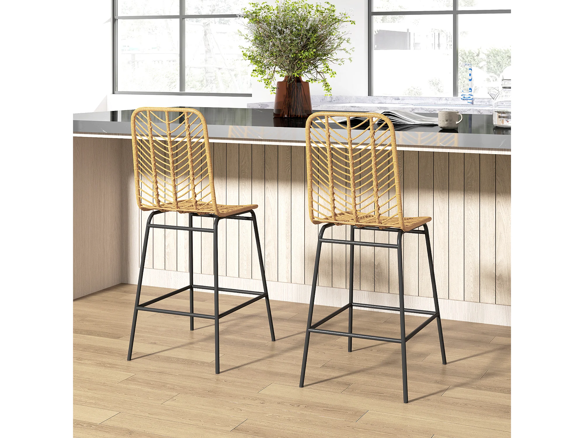 Tabourets de bar lot de 2, rotin pe, siège en cuir pu - 69 cm de haut, style naturel