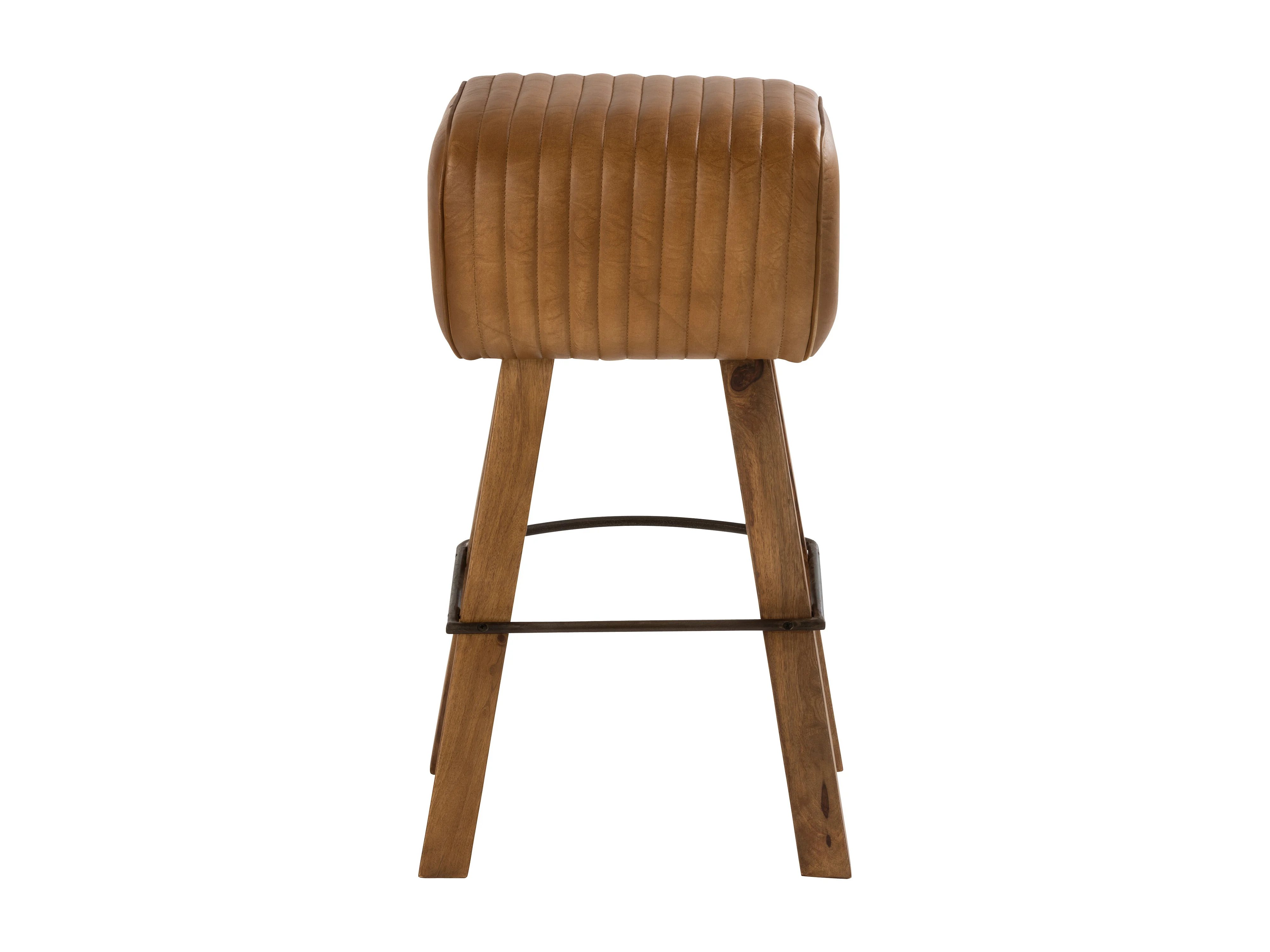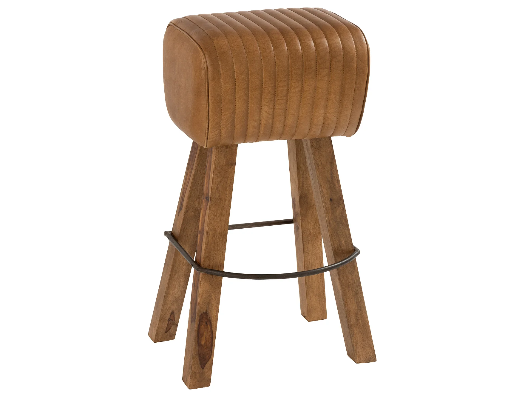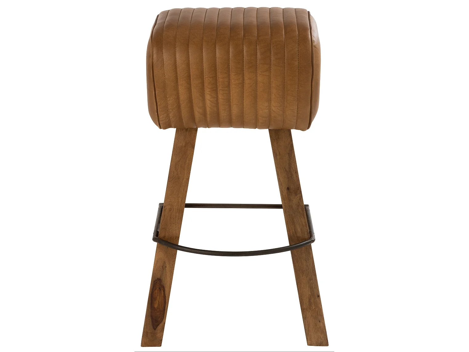 Tabouret de Bar en Cuir & Bois "Gym" 75cm Naturel