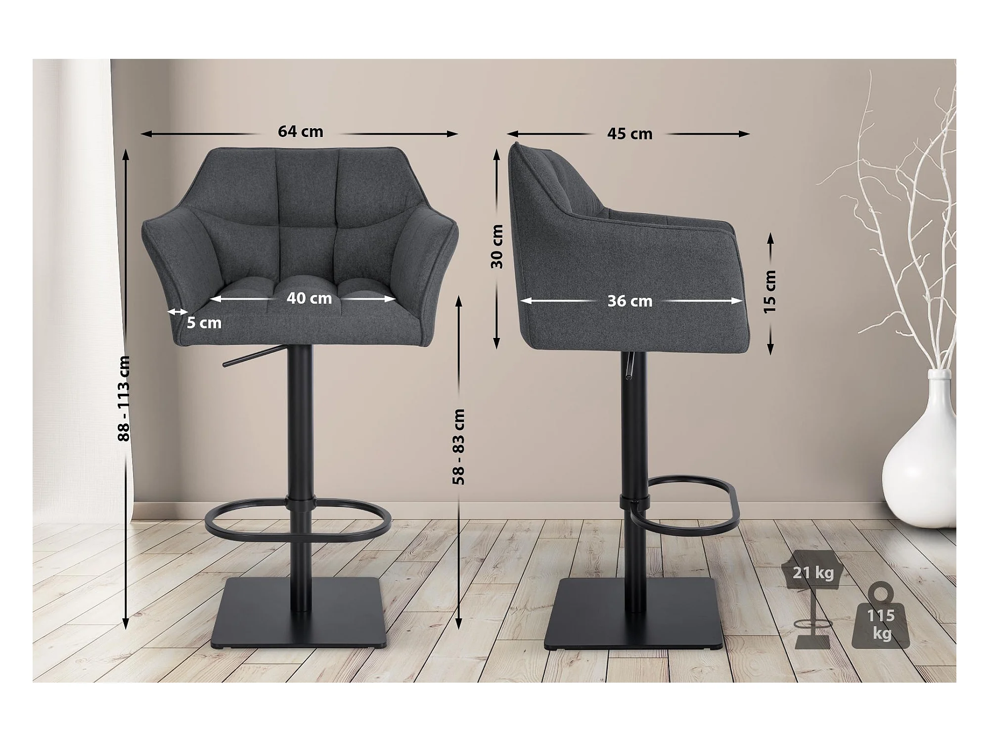 Tabouret de bar - Feutrine & Acier inoxydable - Anthracite - Gambo