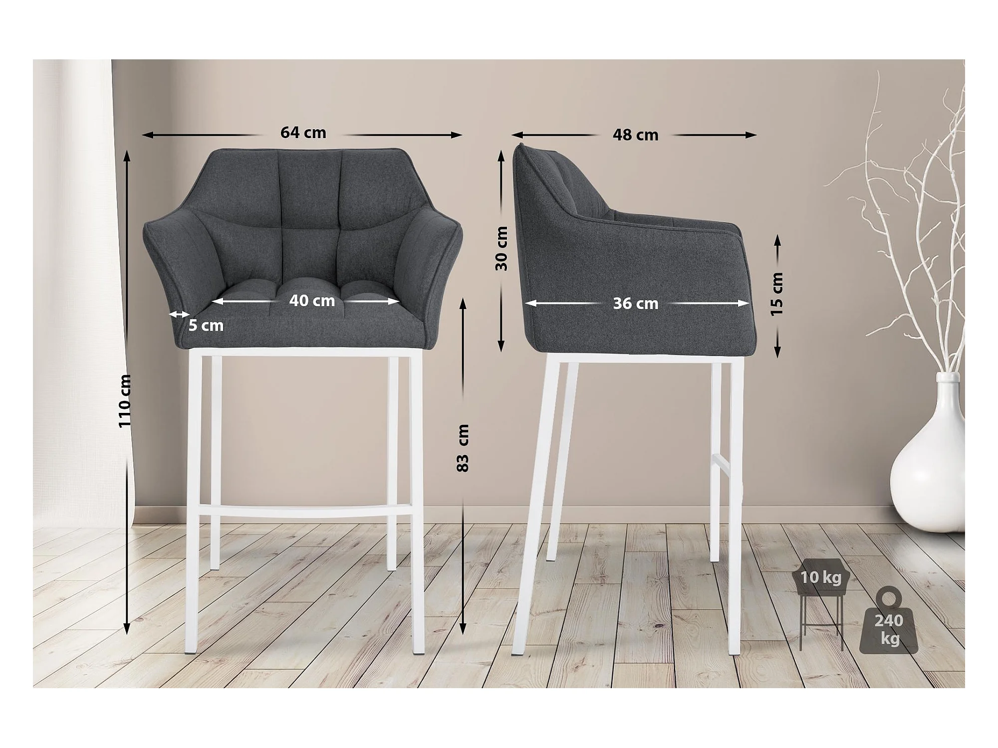 Tabouret de bar - Tissu & Blanc - Gris titane - Damaso