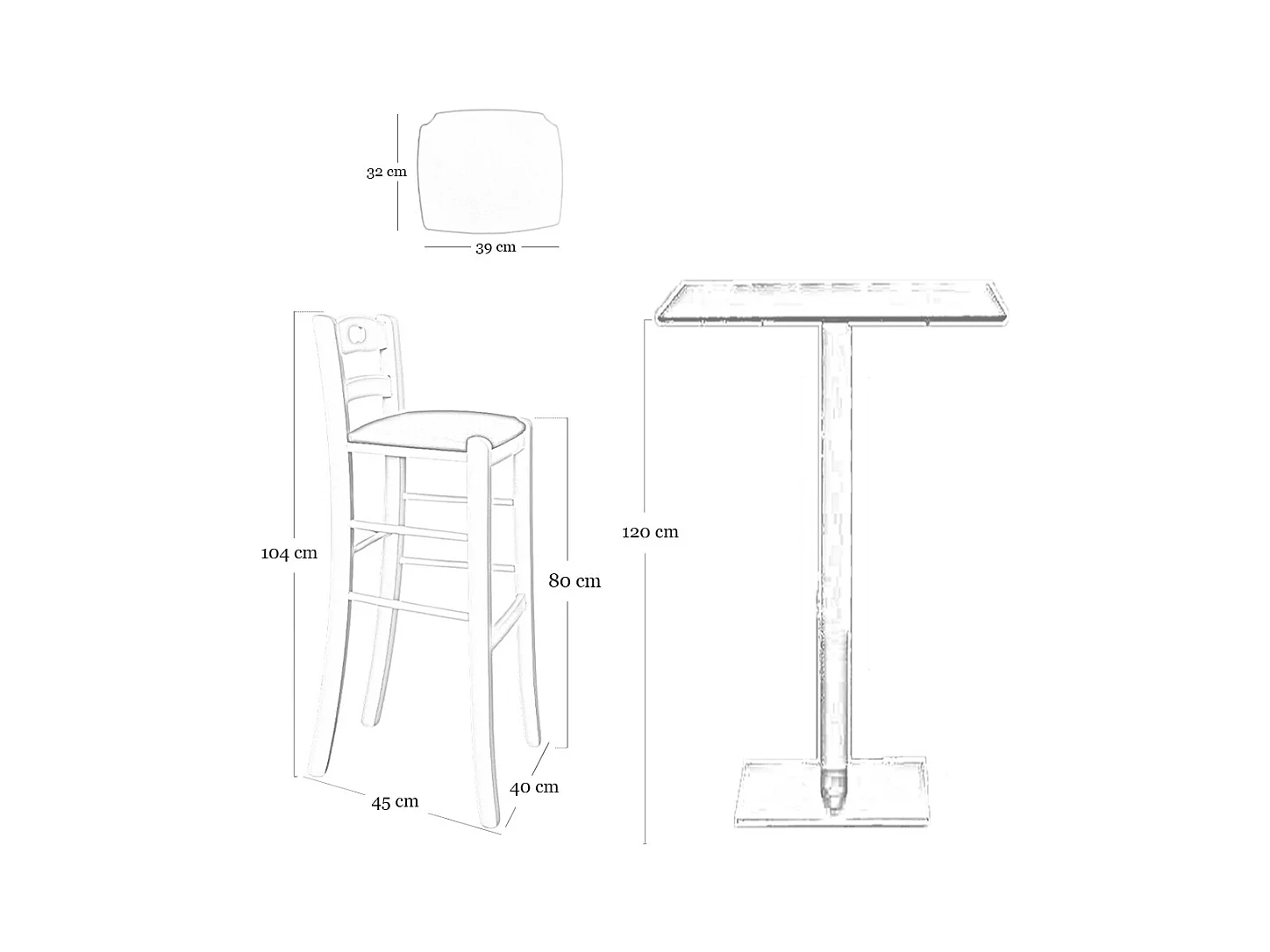 Tabouret H80 en bois de noyer clair avec poignée et assise rembourrée en similicuir marron