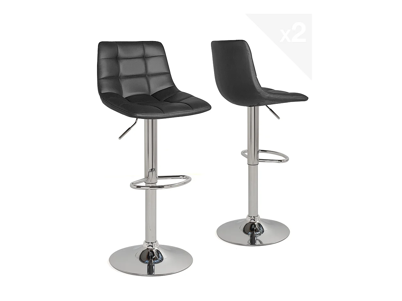 Lot 2 tabourets de bar-cuisine simili cuir pivotant hauteur réglable pied chrome SATI (noir)