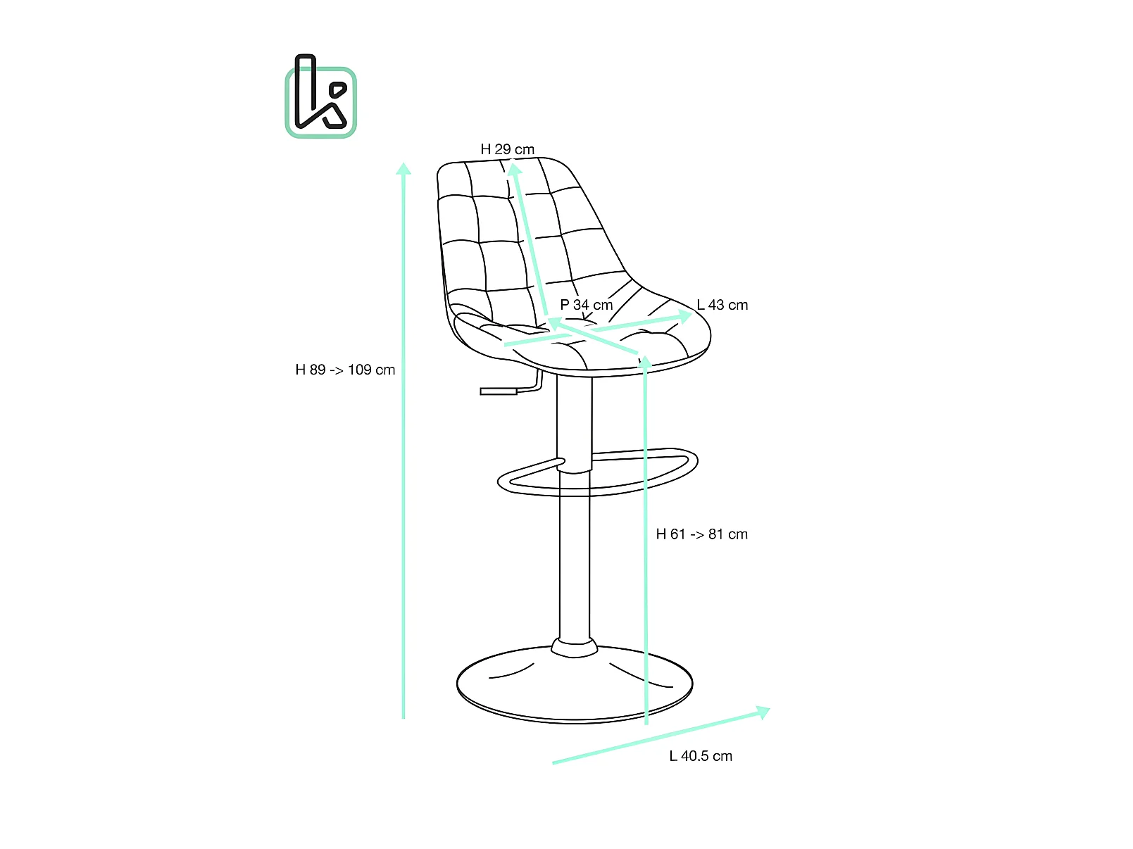 Tabouret de Bar en Velours "Istanbul" 90cm Noir & Or