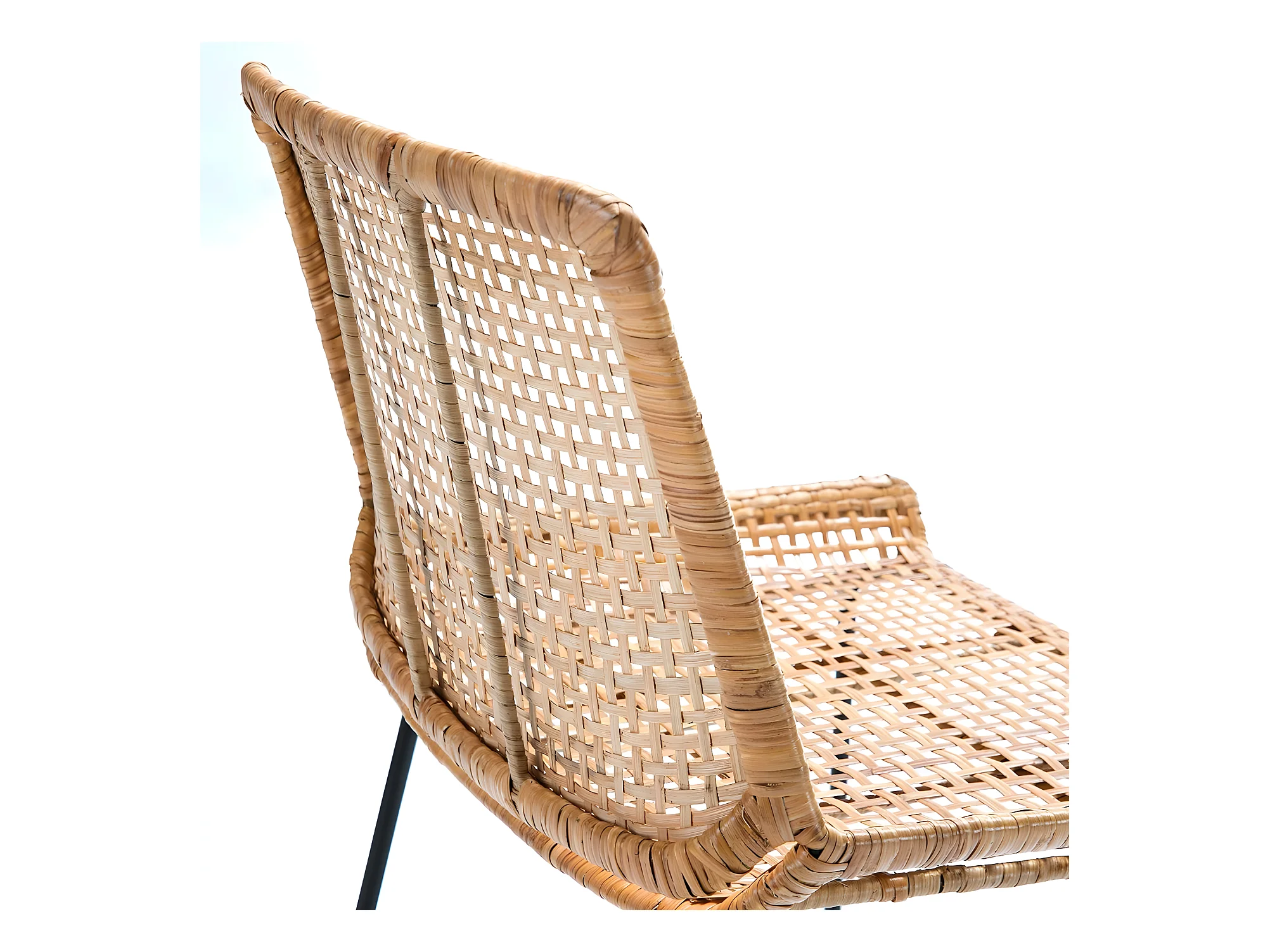 Lot de 2 tabourets de bar en noyer clair, hauteur 80 cm, avec un trou et une assise en paille.