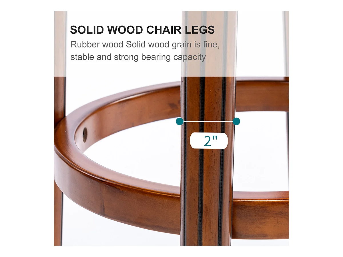 Tabouret de Bar Pivotant 360° en Cuir Véritable et Bois, Design Moderne, Marron (54.8x54.8x96 cm)