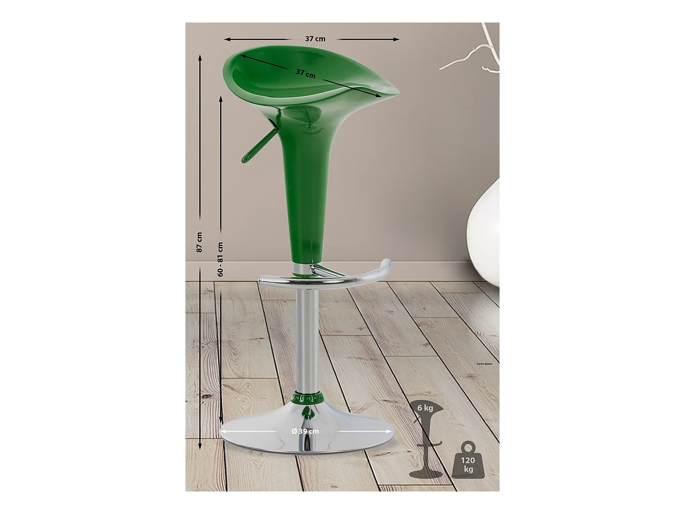 Lot de 2 Tabouret de bar - Plastique & Métal chromé - Vert - Saddle