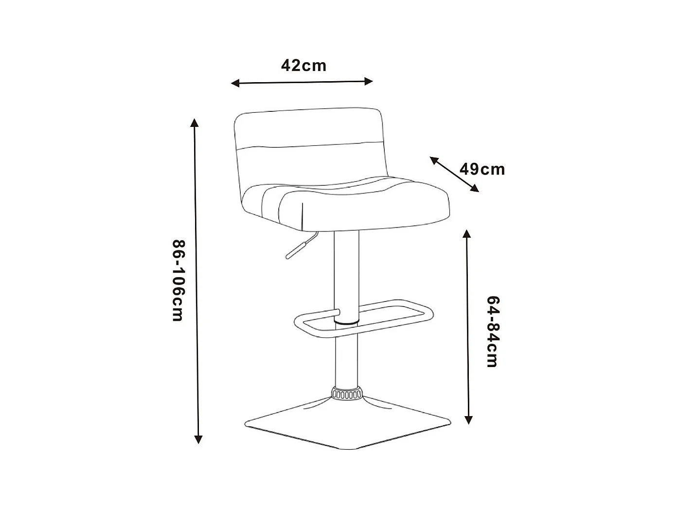 Tabouret de bar avec dossier, réglable en hauteur, pieds en métal, cuir synthétique, noir (42x38x82-104 cm)