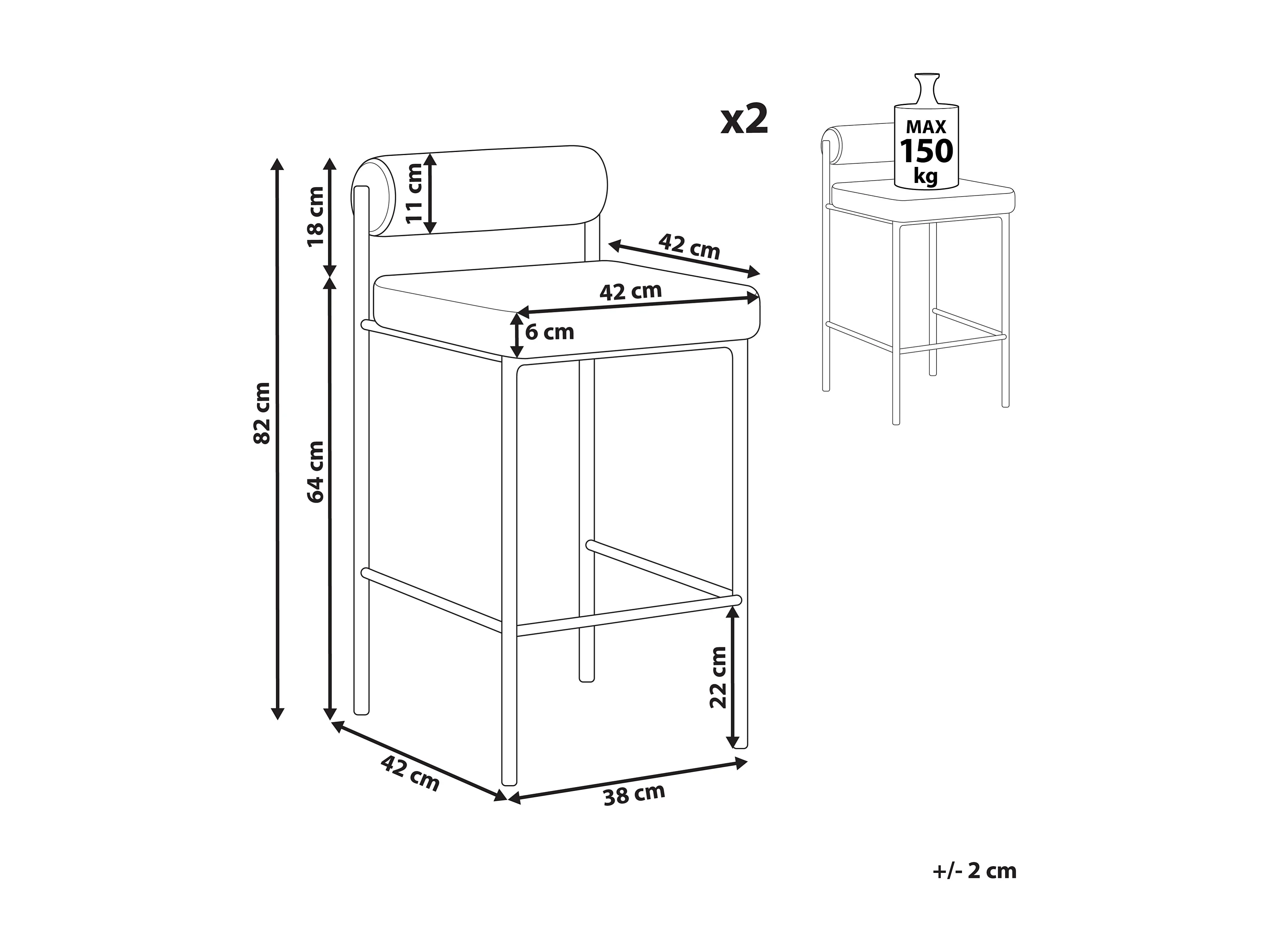 Lot de 2 chaises de bar AMAYA Gris clair