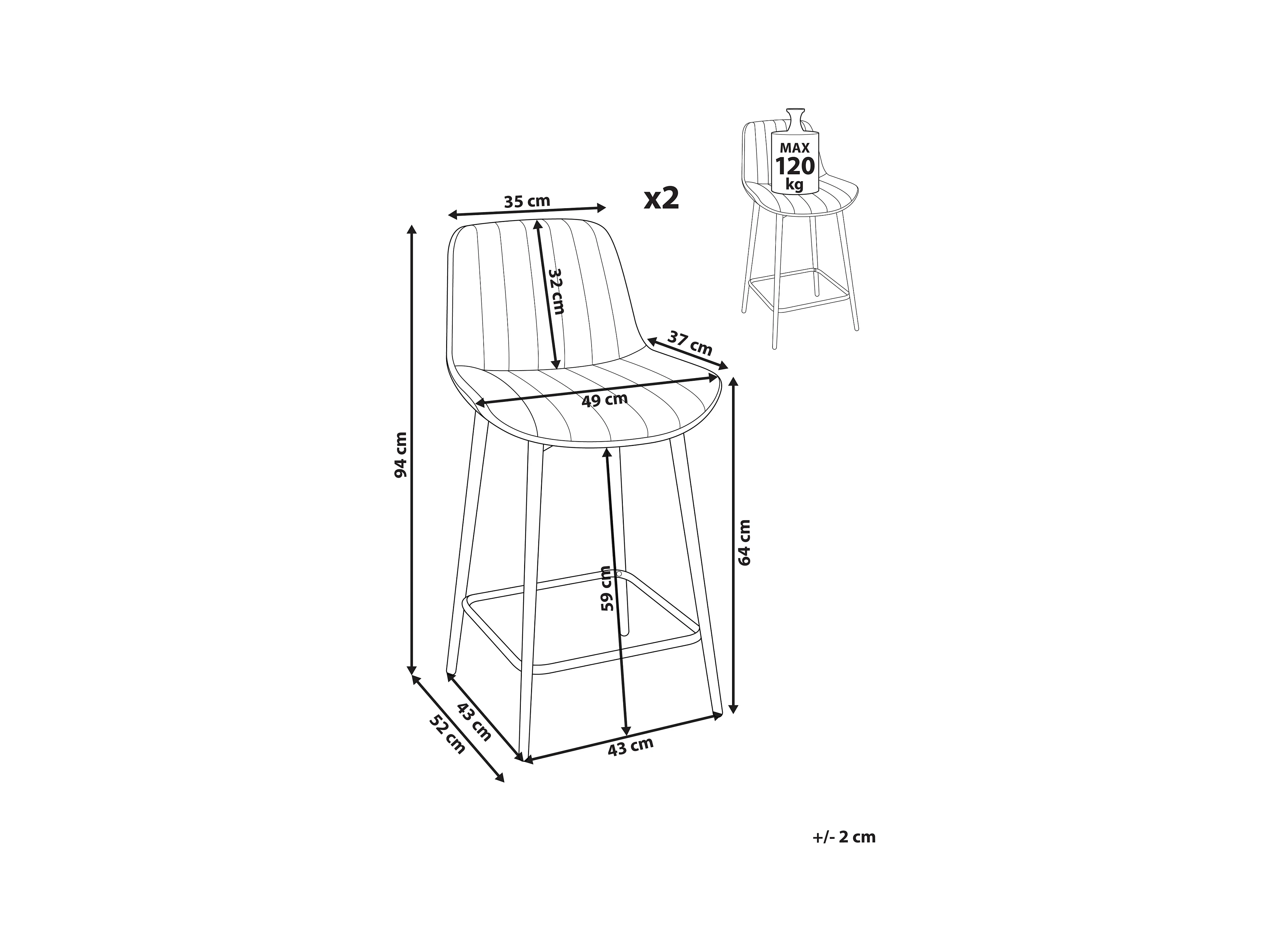Lot de 2 chaises de bar DUBROVNIK Velours Beige clair