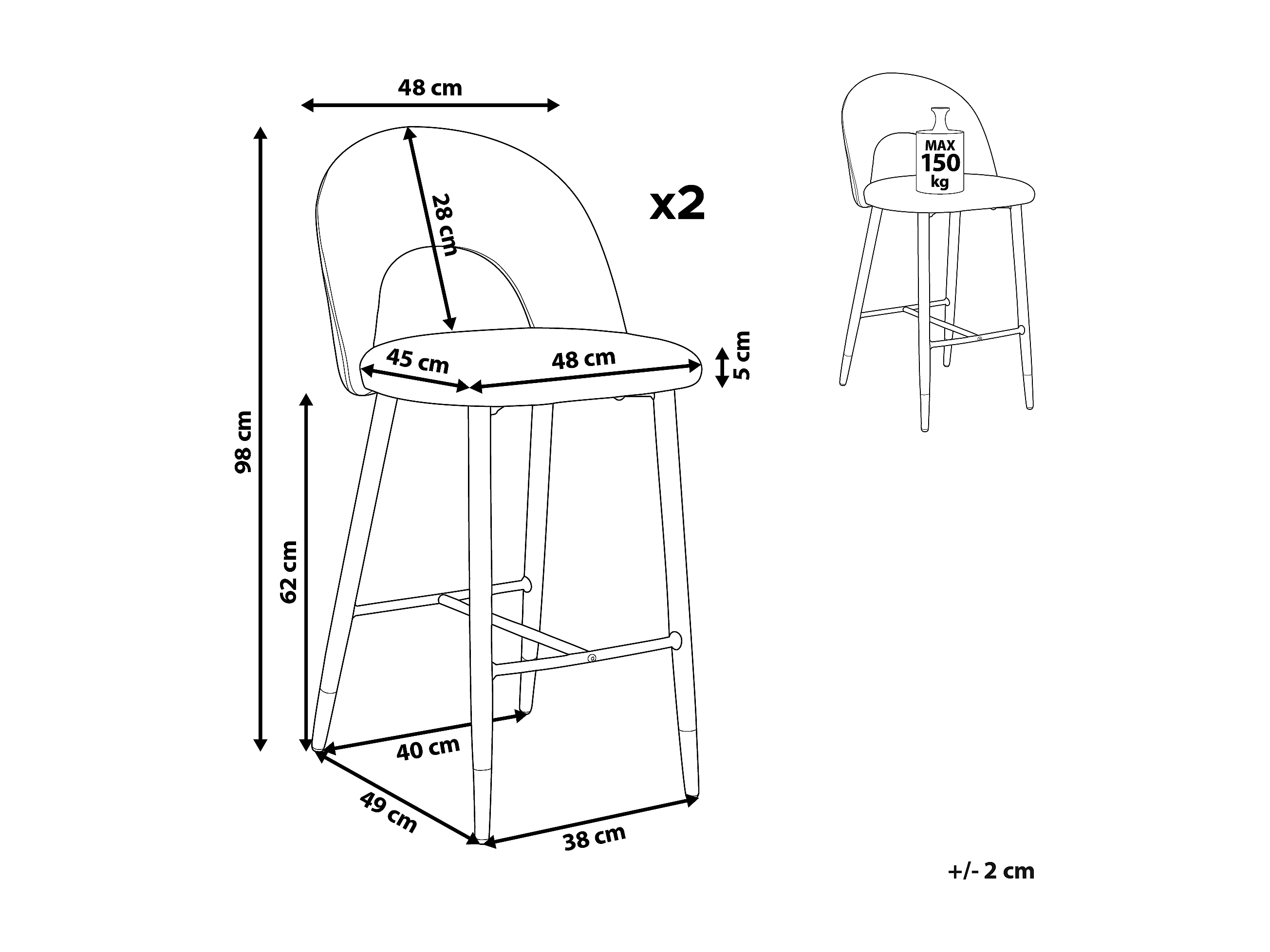 Lot de 2 chaises de bar FALTON Velours Noir/blanc