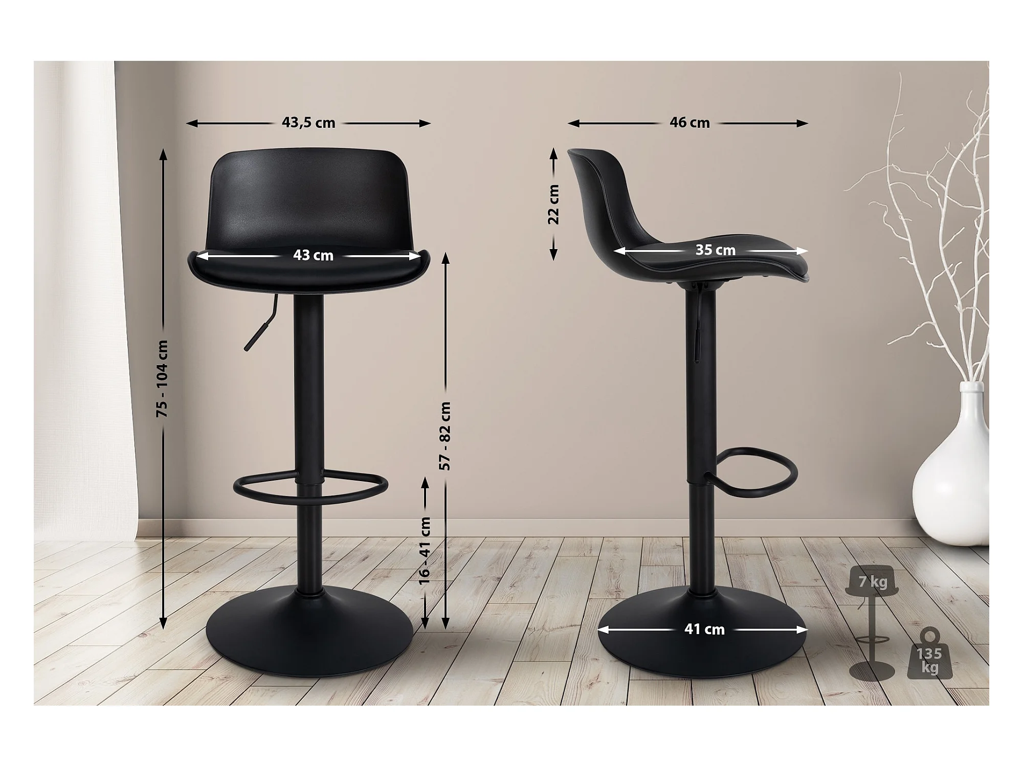 Tabouret de bar - Similicuir & Chrome - Noir - Almada