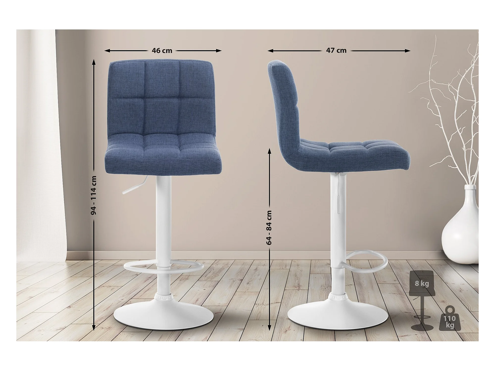 Tabouret de bar tissu hauteur ajustable