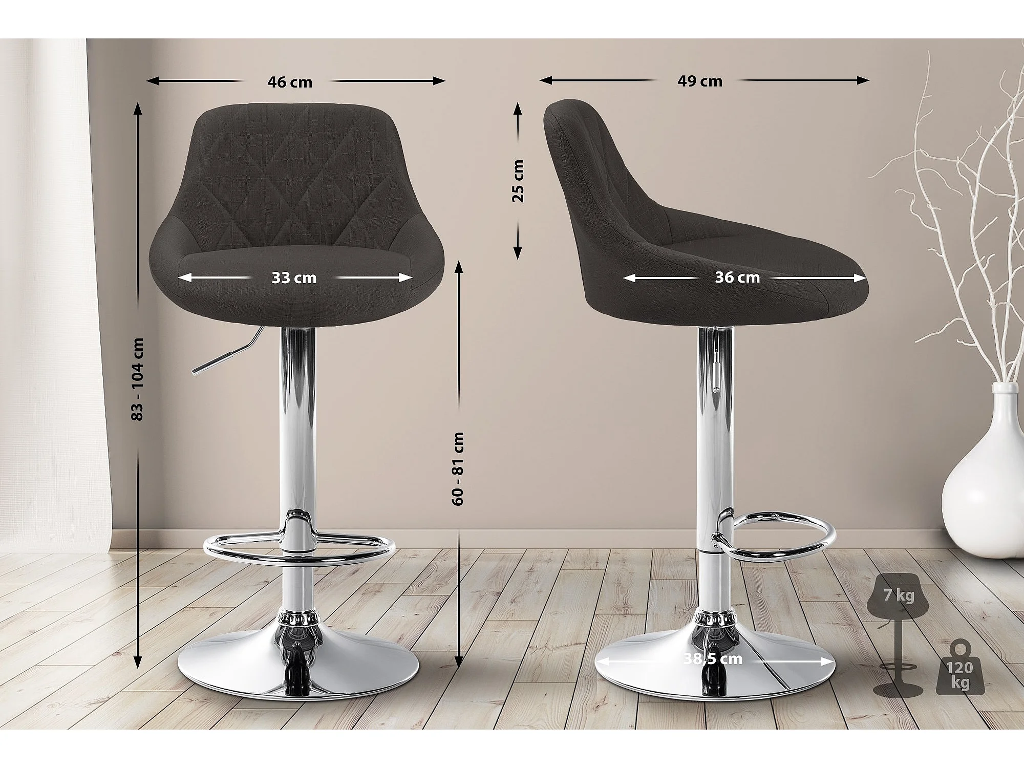 Tabouret de bar - Tissu & Chrome - Gris foncé - Lazio