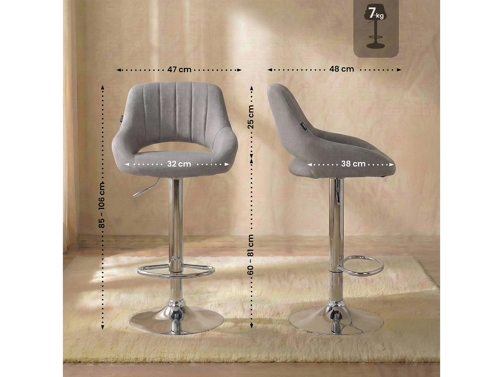 Tabouret de bar - Tissu & Chrome - Gris clair - Hoover