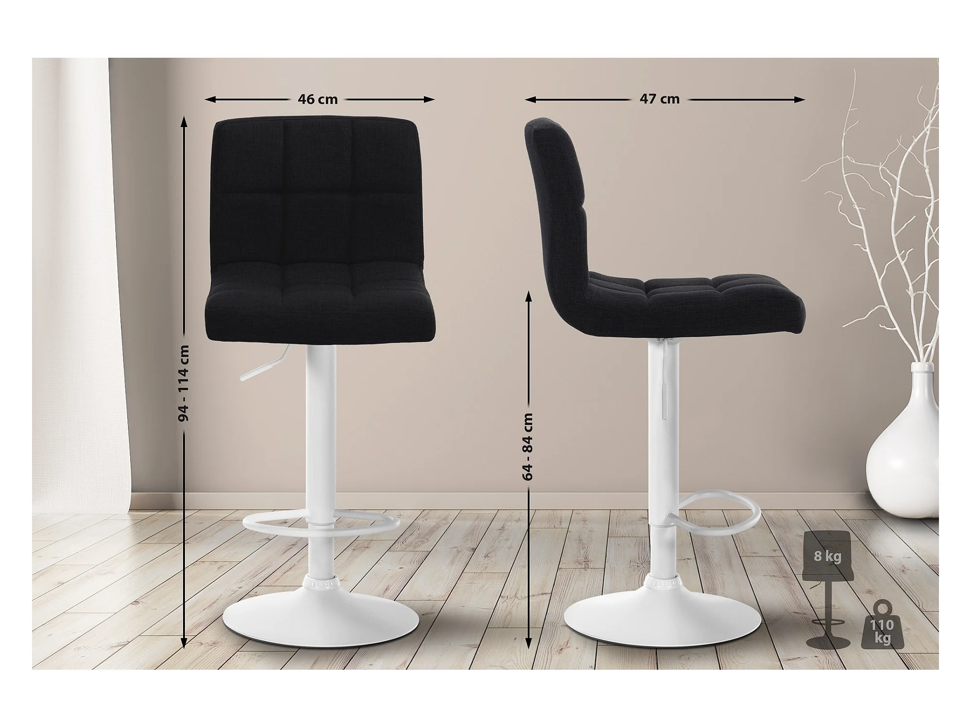 Tabouret de bar - Tissu & Blanc - Noir - Lazio