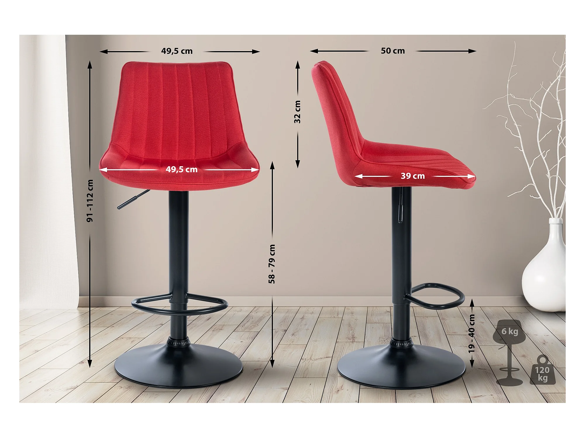 Tabouret de bar - Tissu & Noir - Rouge - Toni