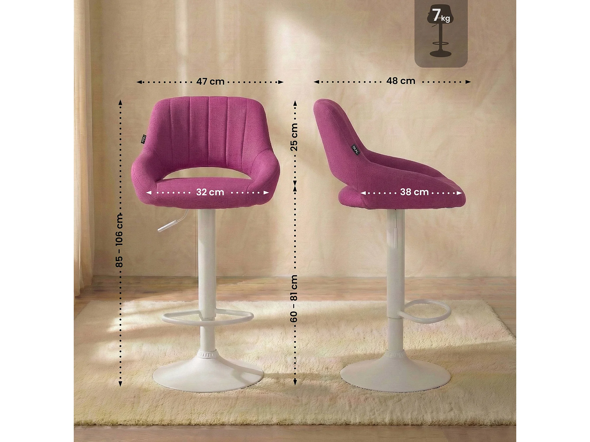 Tabouret de bar - Tissu & Blanc - Violet - Milet