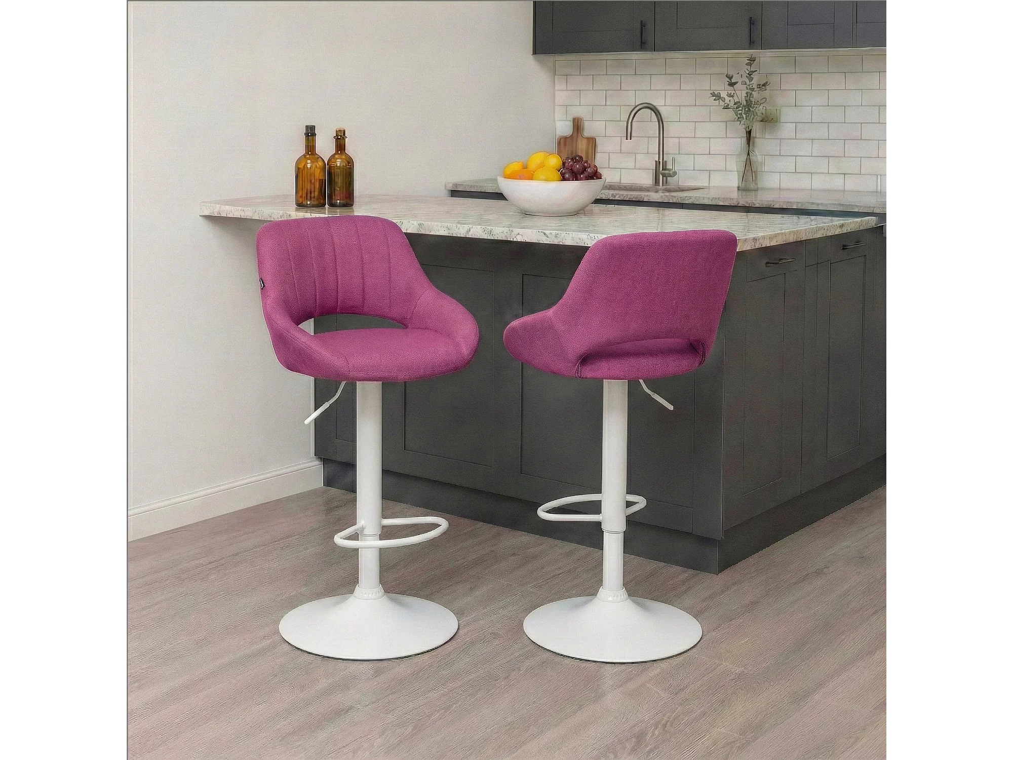 Tabouret de bar - Tissu & Blanc - Violet - Damaso