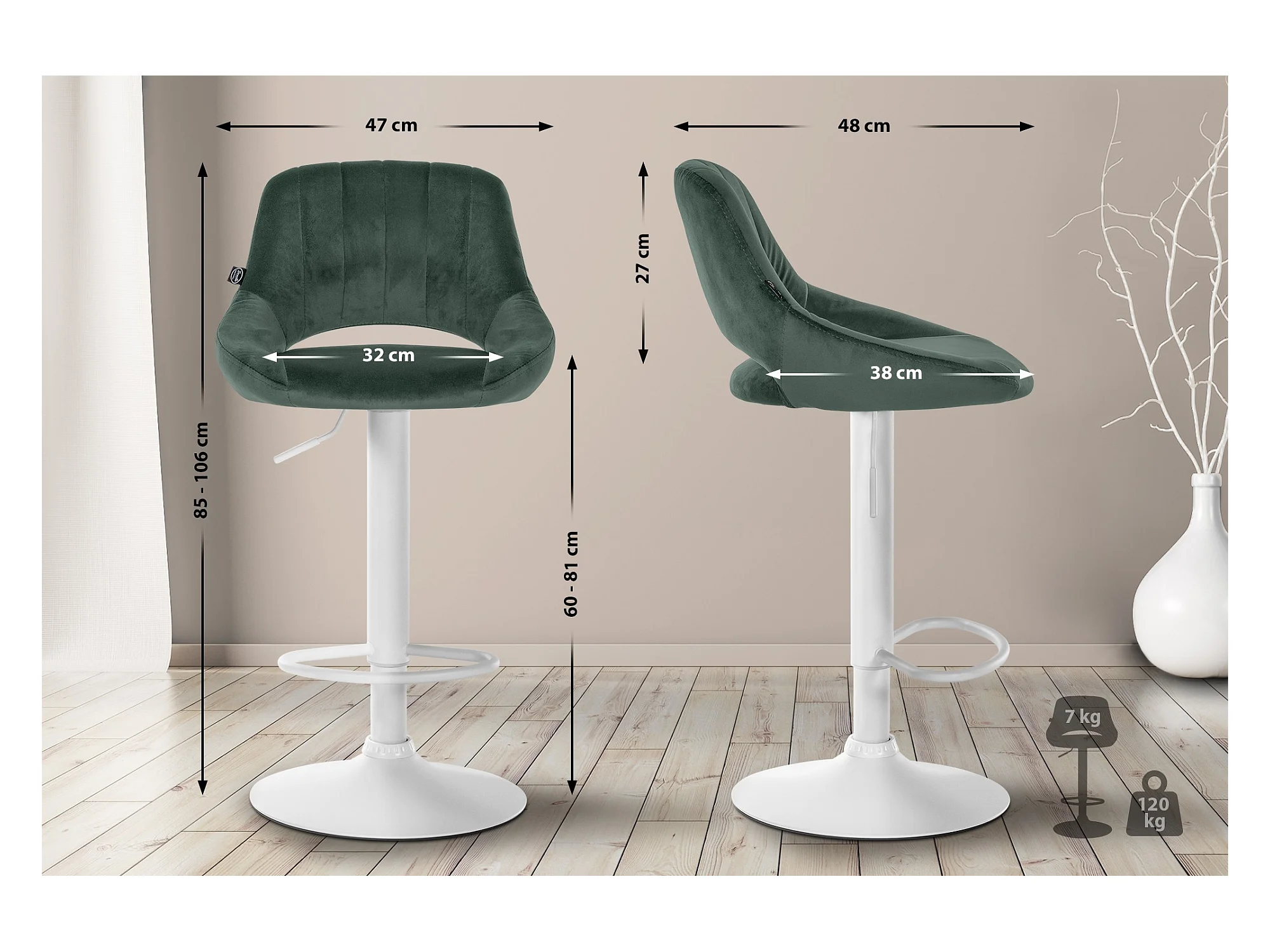Tabouret de bar - Velours & Blanc - Vert - Peru