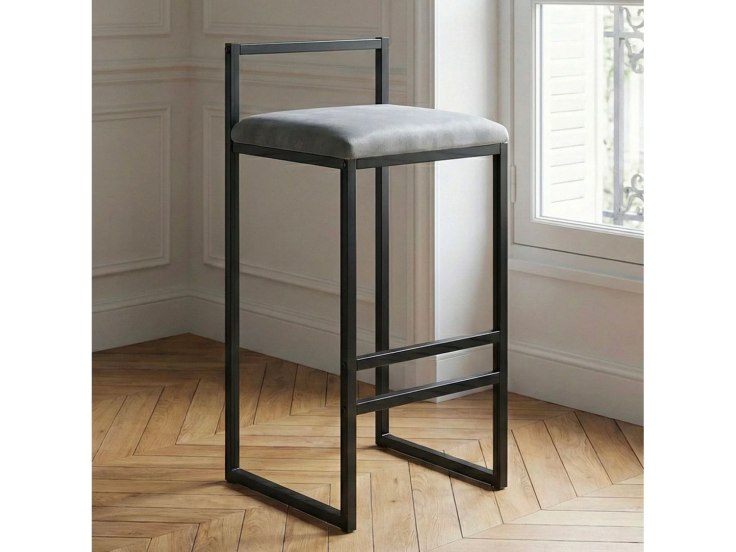 Tabouret de bar en métal Drakkar Noir et Velours Gris