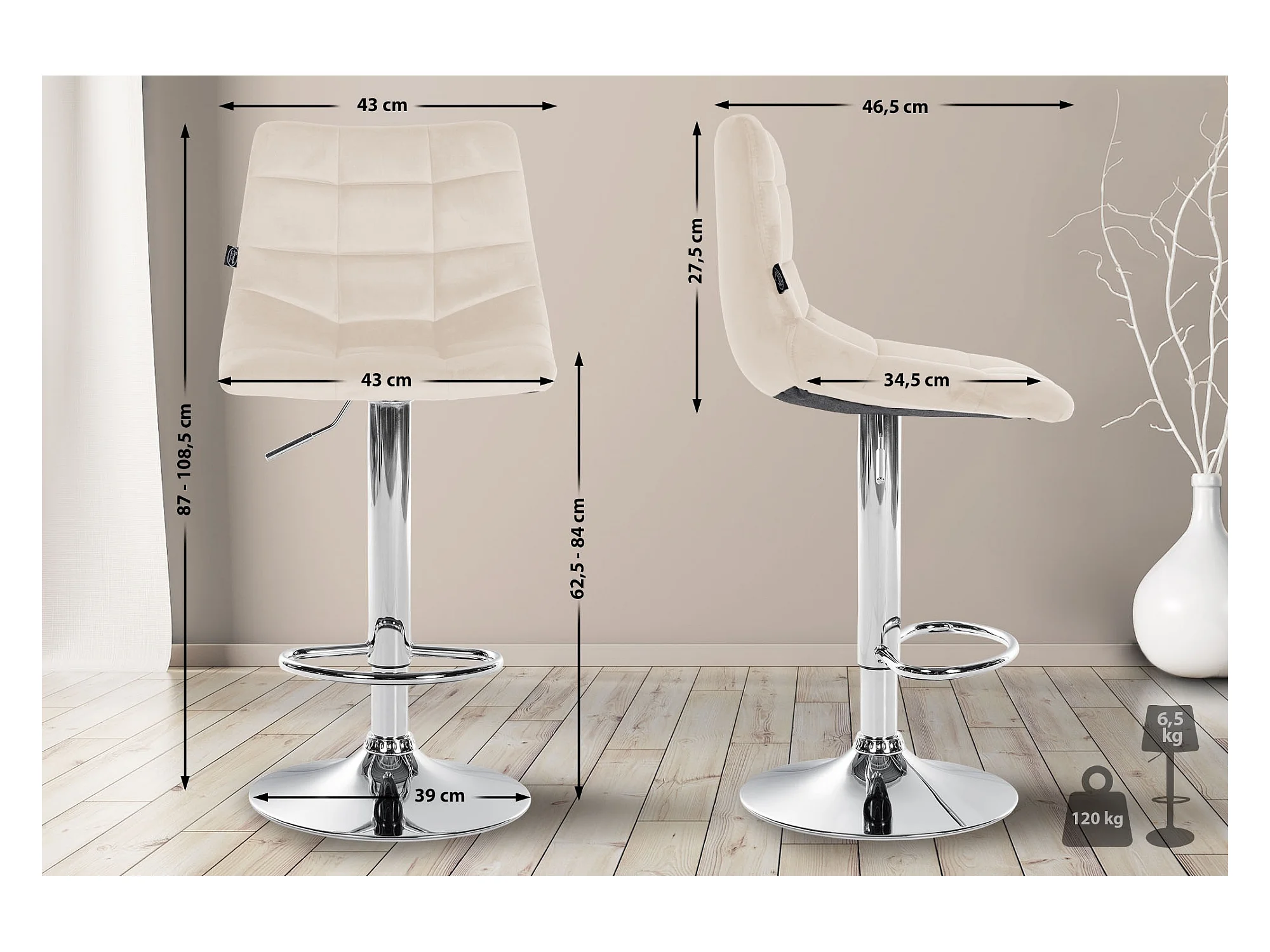 Tabouret de bar - Velours & Chrome - Crème - Peru