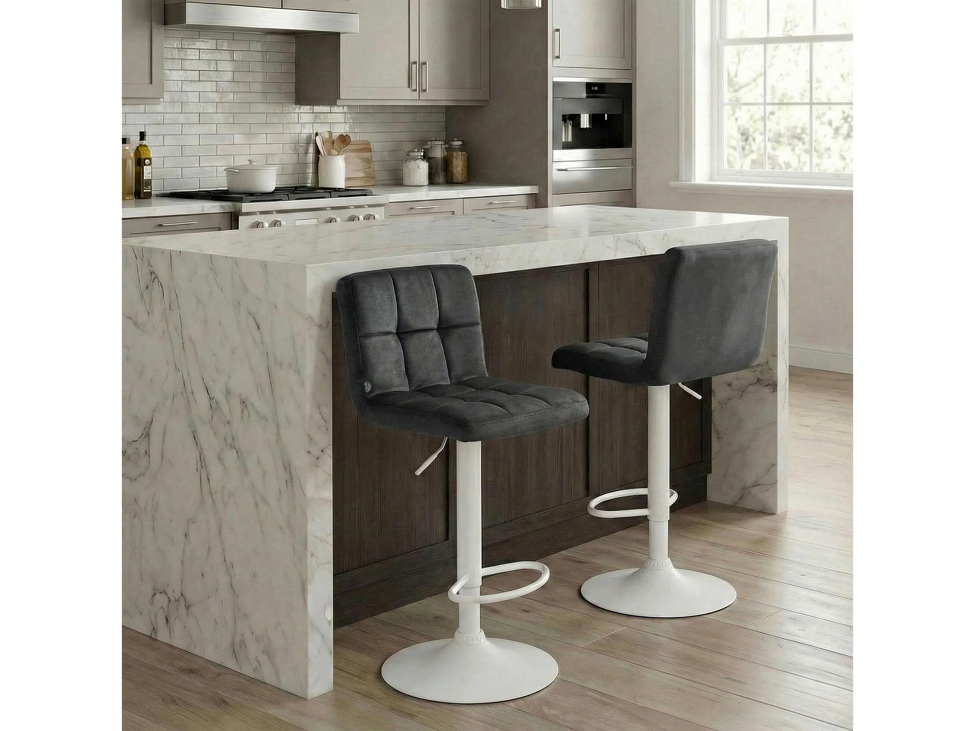 Tabouret de bar - Velours & Blanc - Gris foncé - Peru