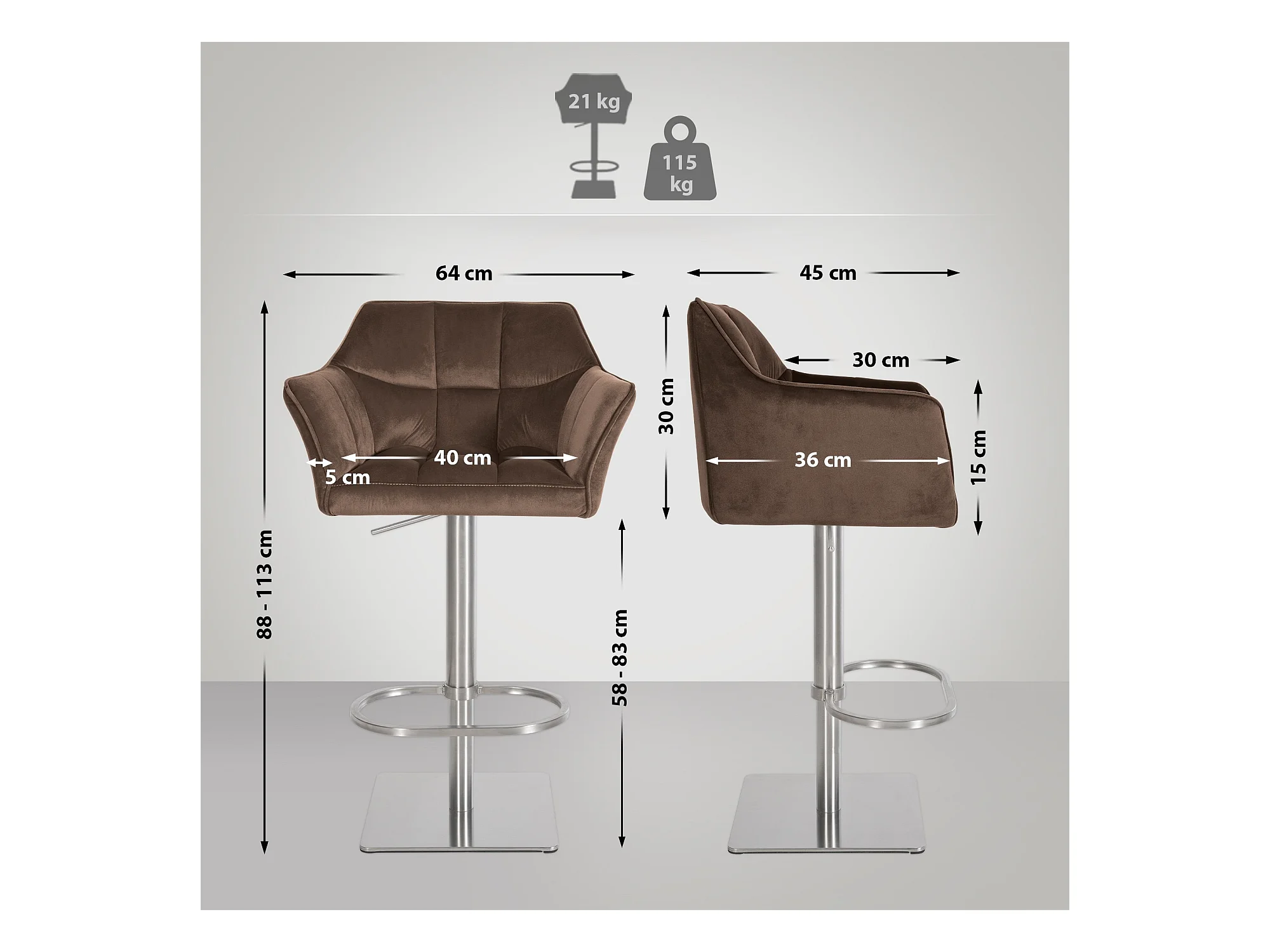Tabouret de bar - Velours & Acier inoxydable - Marron - Damaso