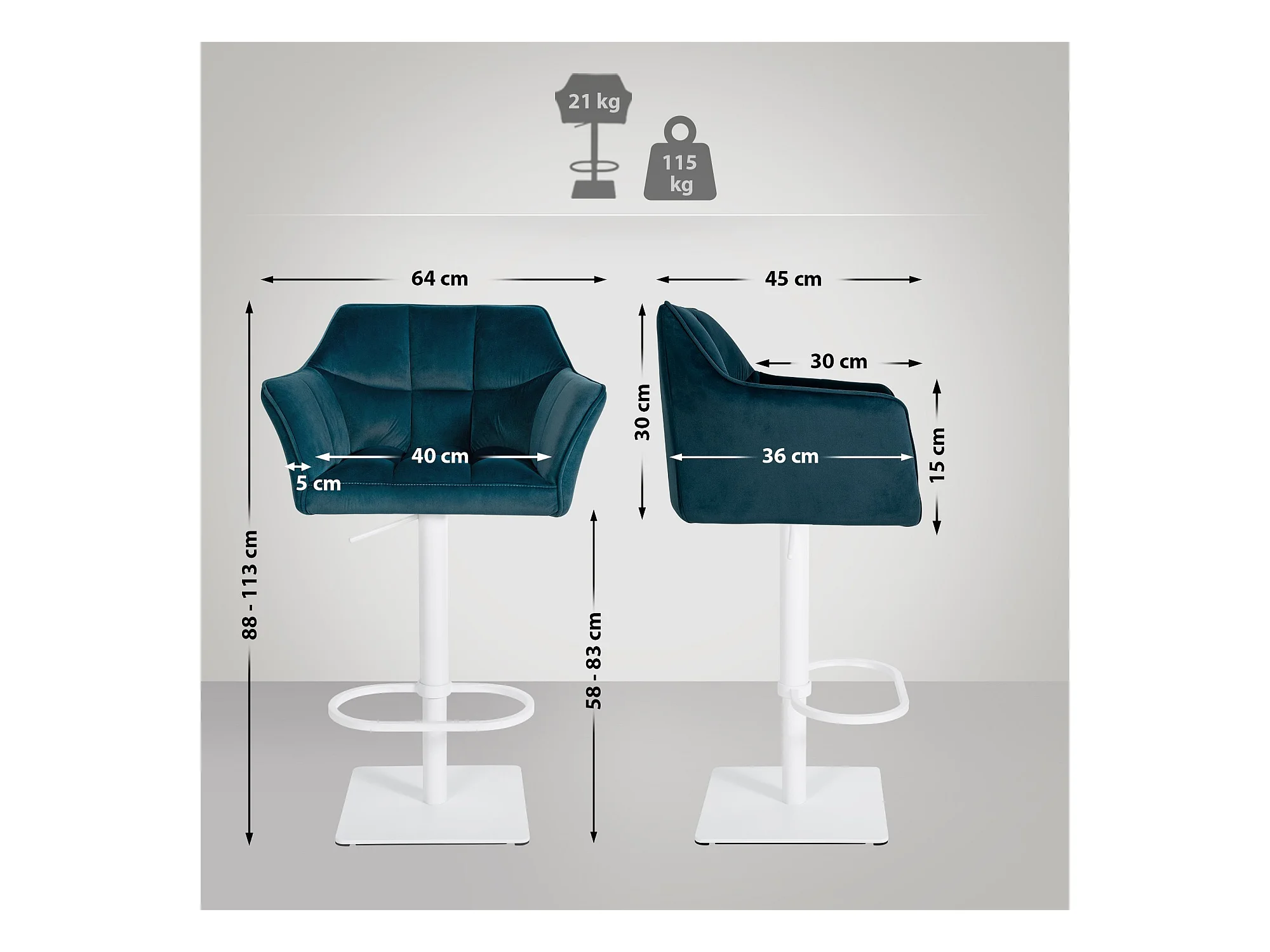 Tabouret de bar - Velours & Blanc - Vert - Damaso