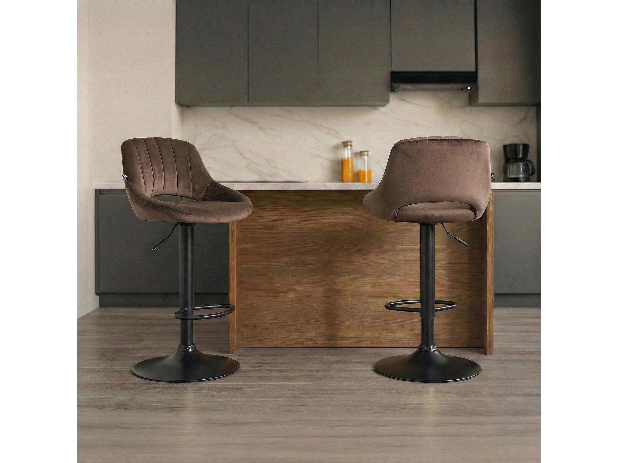Tabouret de bar - Velours & Noir - Marron - Damaso