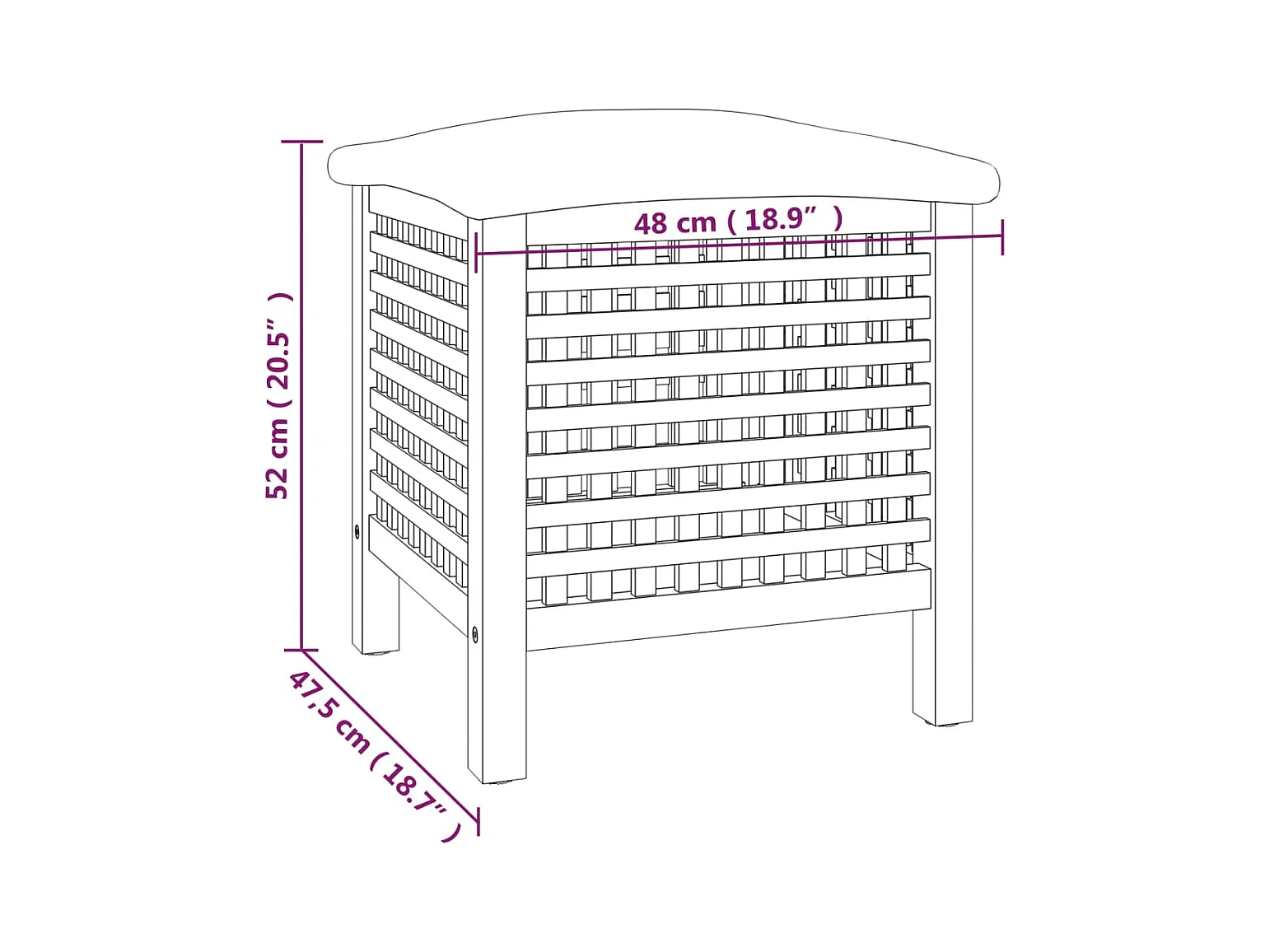 Panier à linge 45x45x65 cm Bois massif de noyer