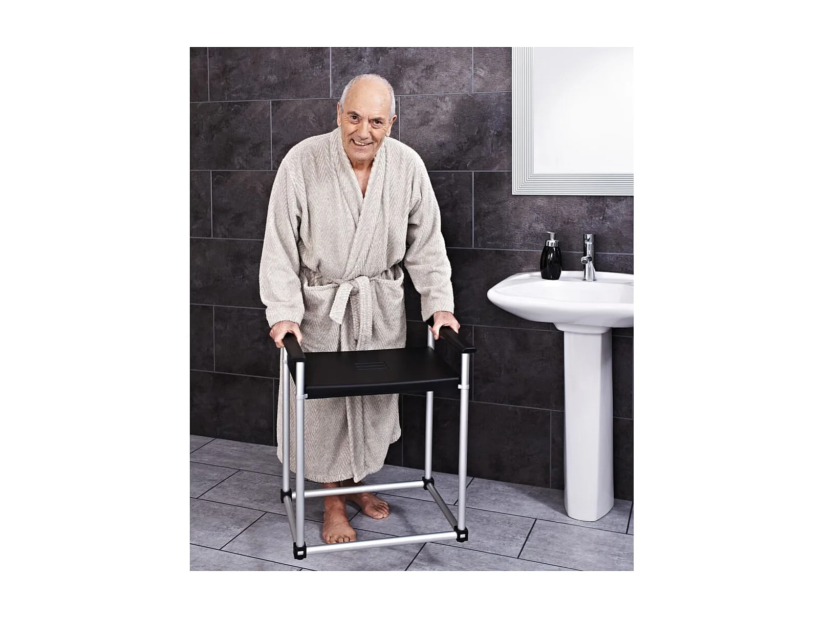 Tabouret de salle de bain Zac XXL Noir PU/aluminium