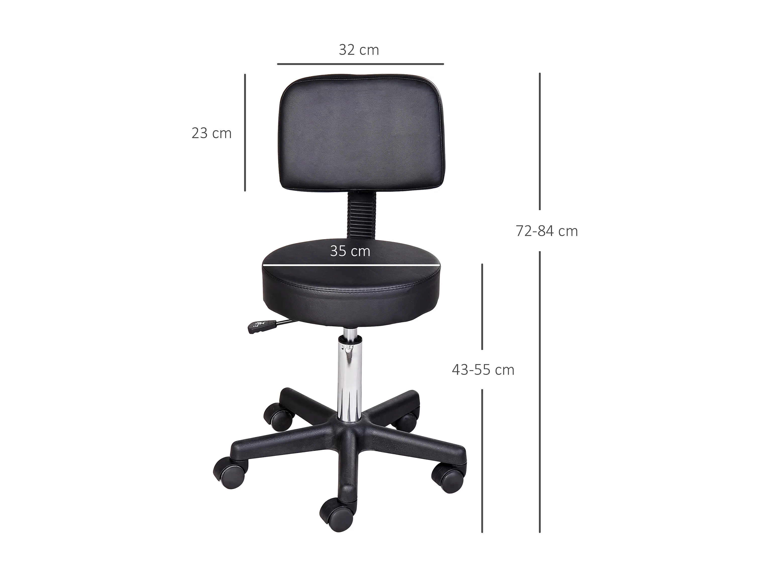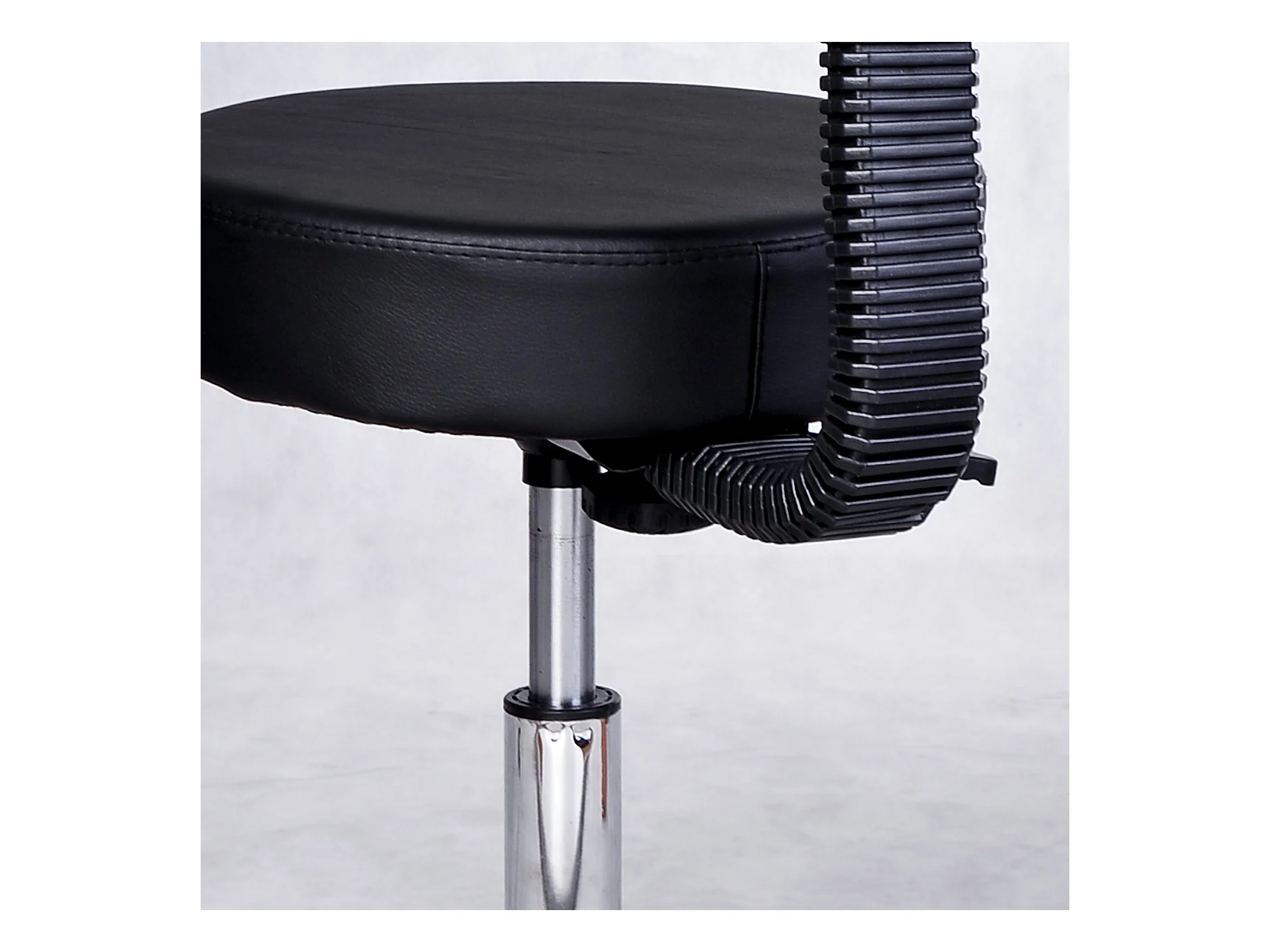 Tabouret à roulettes réglable avec dossier, pivotant 360°, hauteur 59-75 cm, siège ergonomique pour bureau, salon, massage, couleur noir