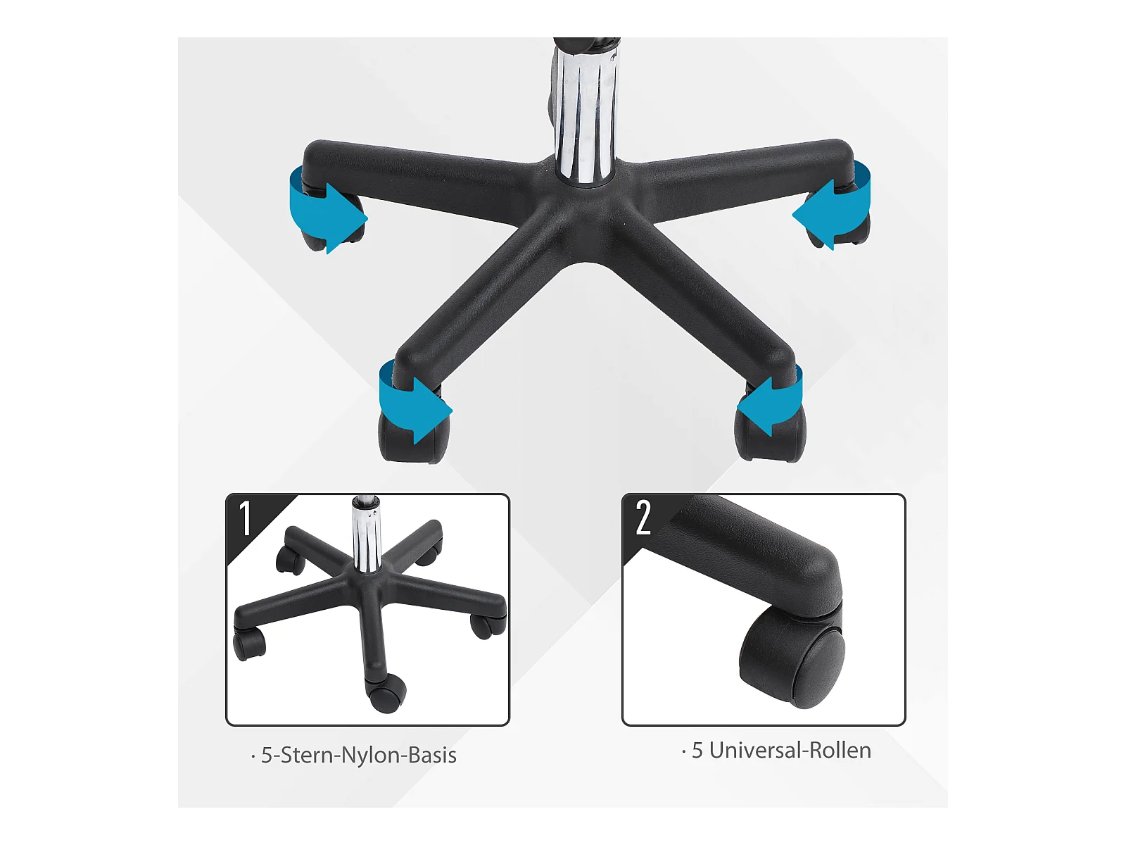 Tabouret de travail pivotant 360° avec fonction massage, réglable, dossier ergonomique, métal chromé et revêtement cuir synthétique noir