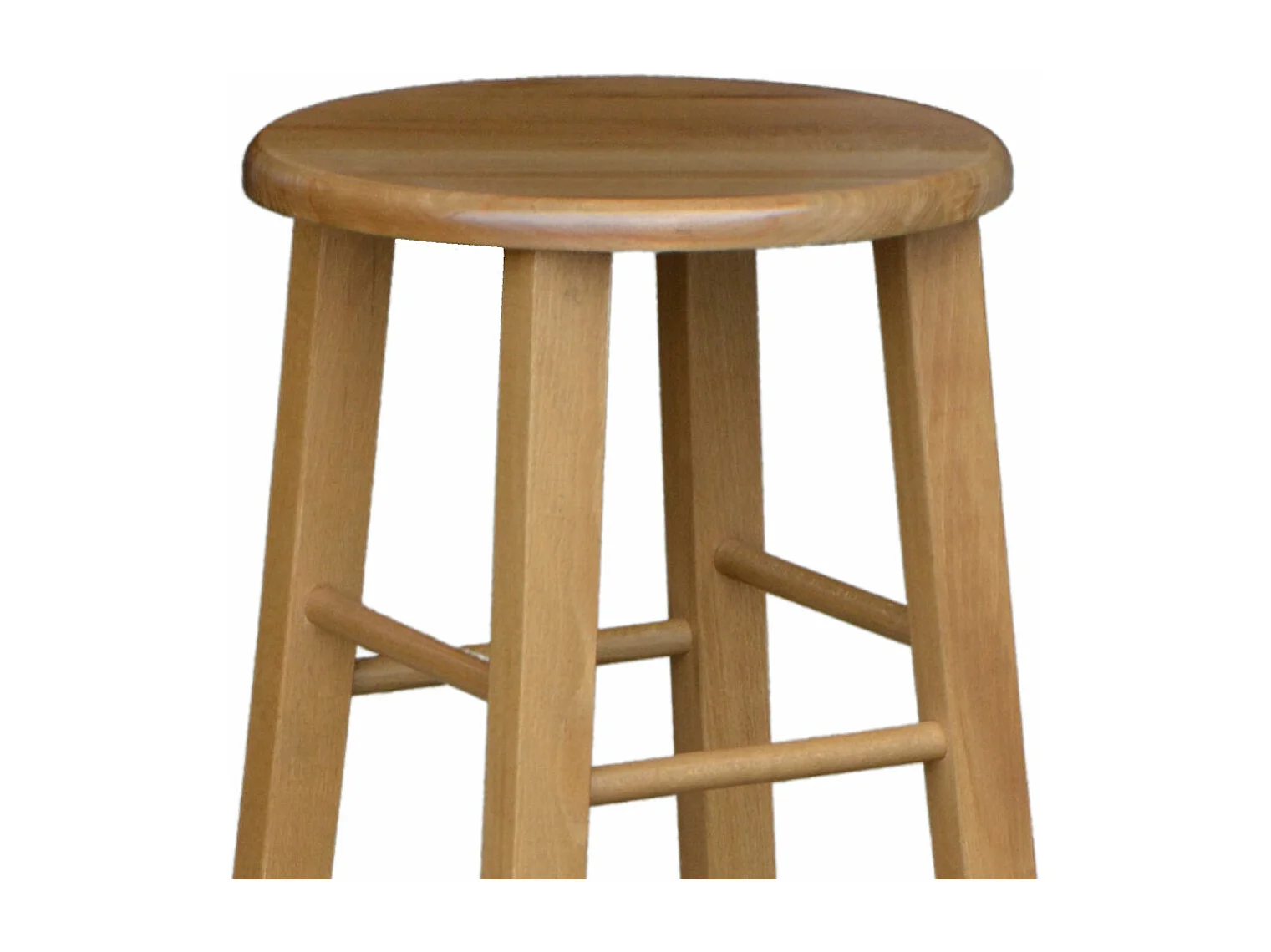 Tabouret en bois avec assise ronde h 68 pieds droits noyer clair