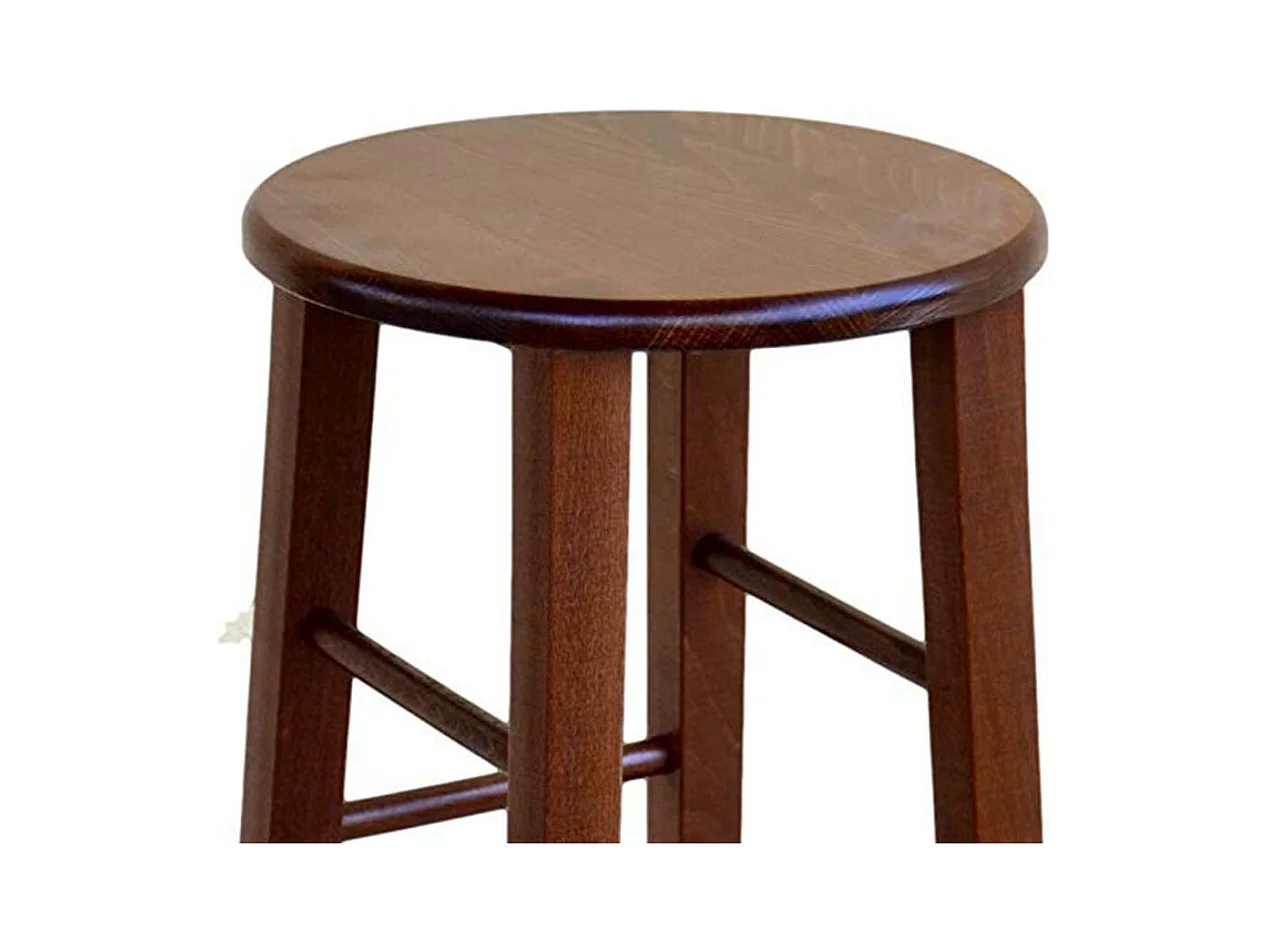 Tabouret en bois avec assise ronde h67 pieds sabre noyer foncé
