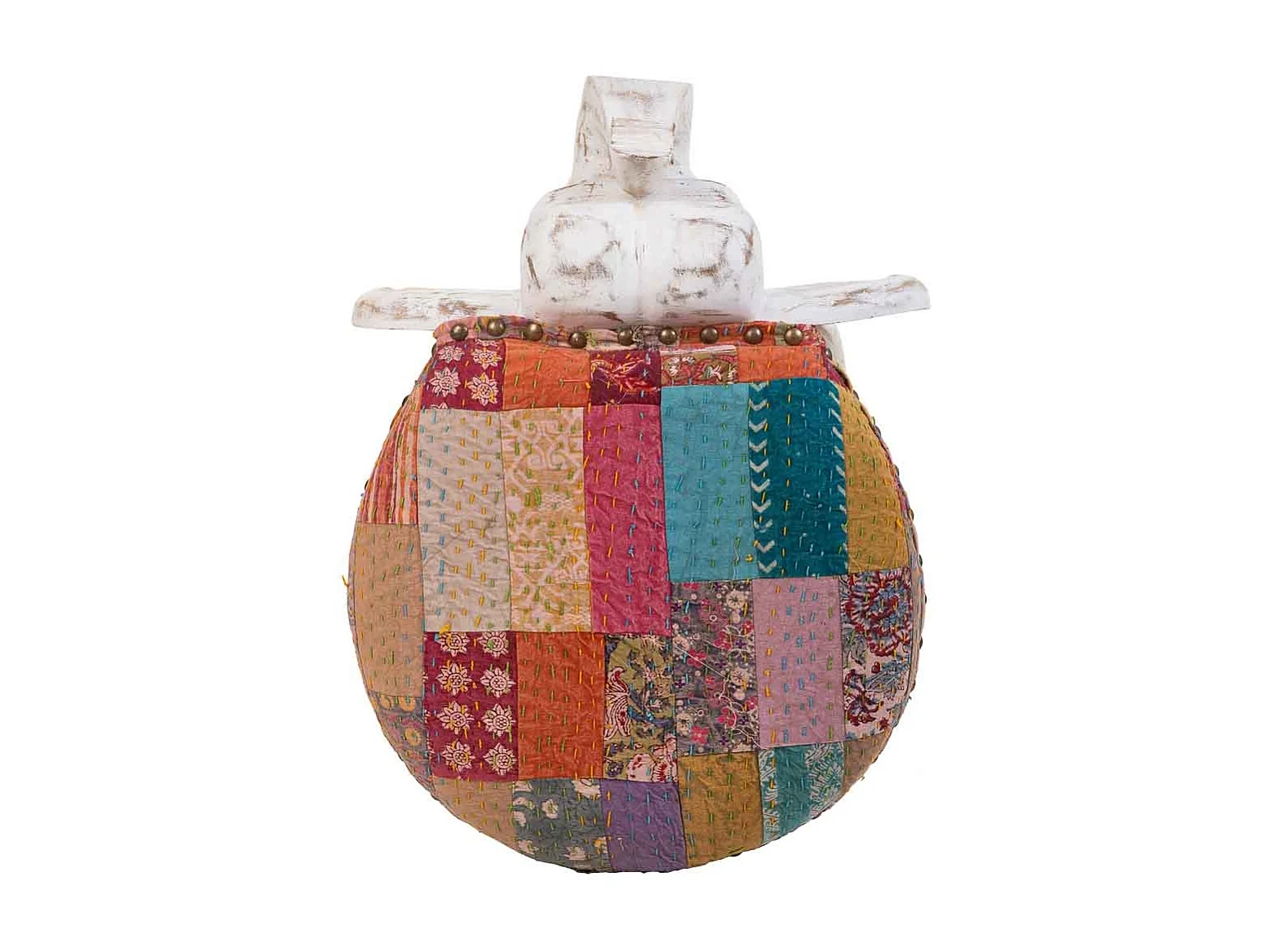 Tabouret en bois de manguier peint à la main avec détails multicolores