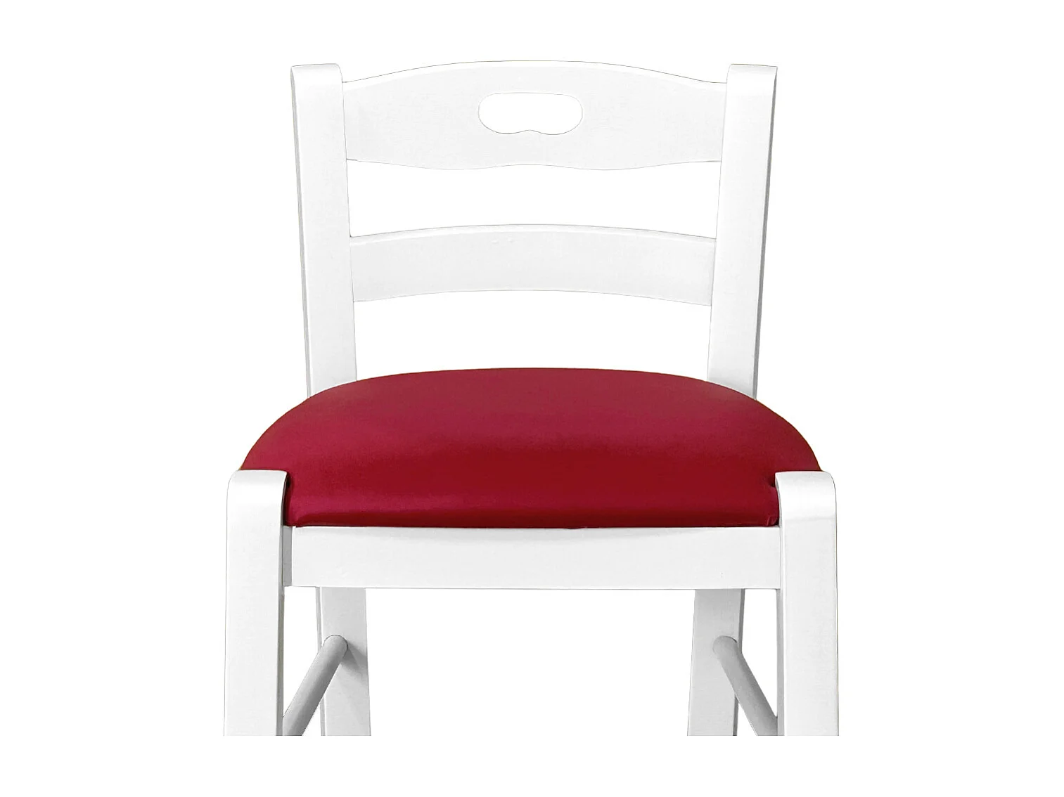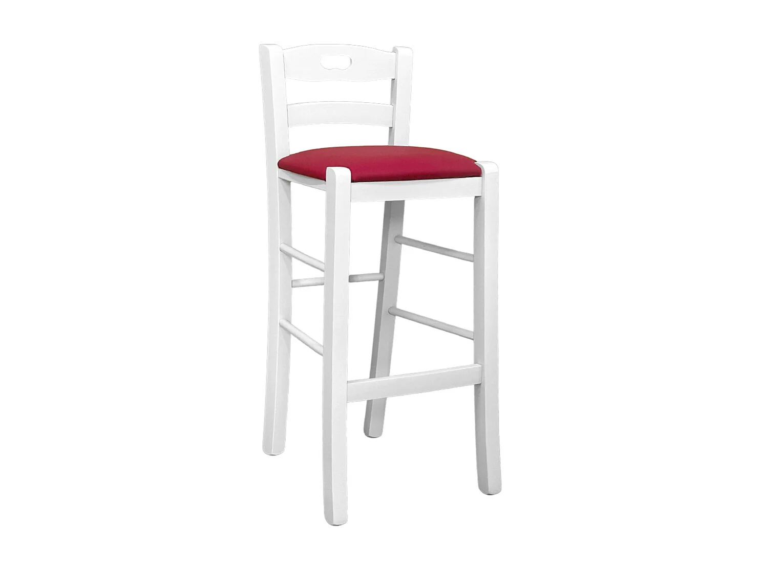 Tabouret en bois blanc avec trou dans le dossier h66 assise en éco-cuir rouge
