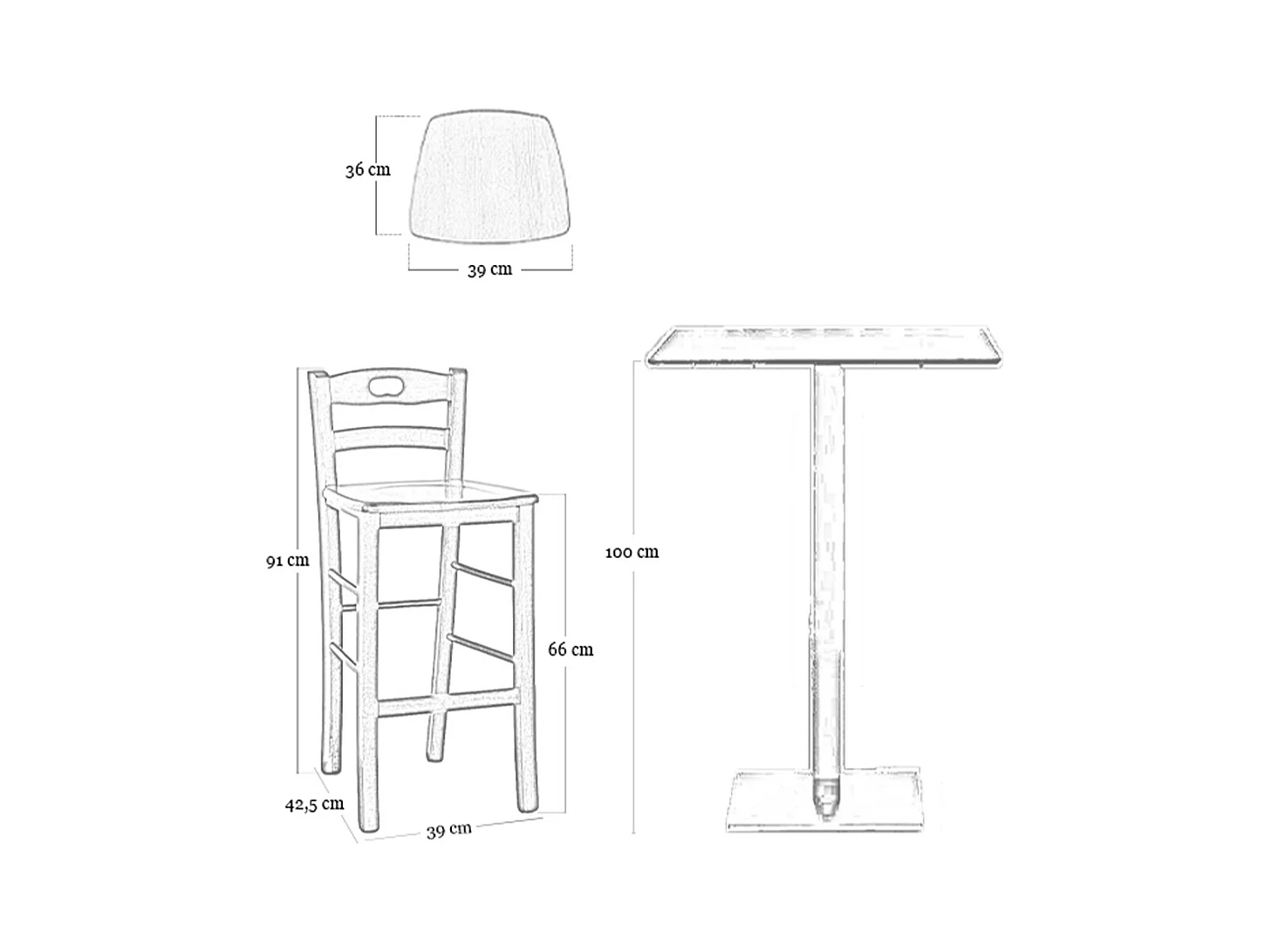 Tabouret en bois h66cm avec dossier avec poignée avec assise en noyer clair massif