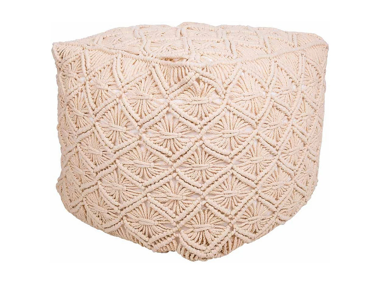 Tabouret en coton tissé blanc et bois 26x39x44h cm