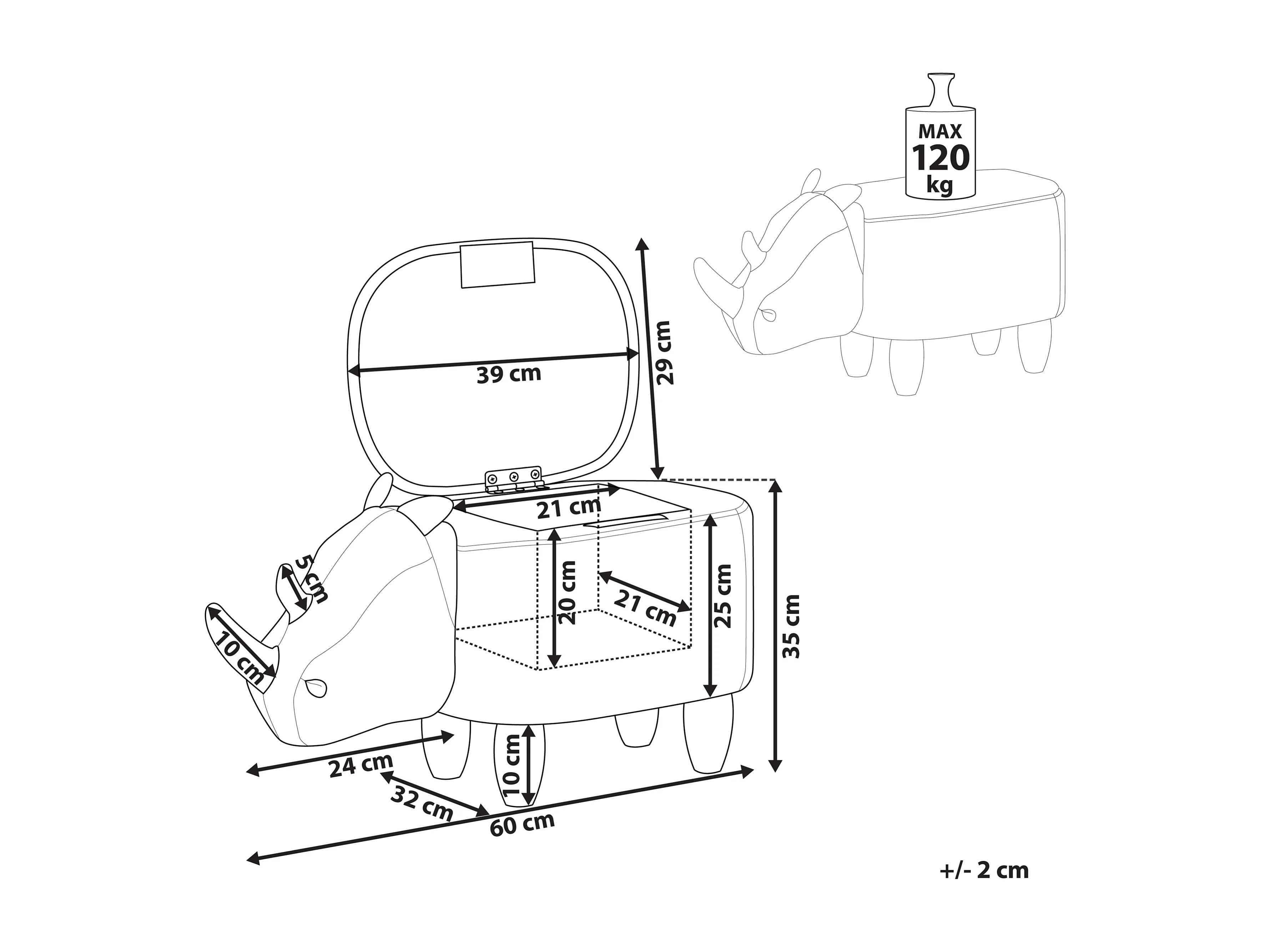 Tabouret de rangement animal RHINO Cuir PU Gris clair Rhinocéros