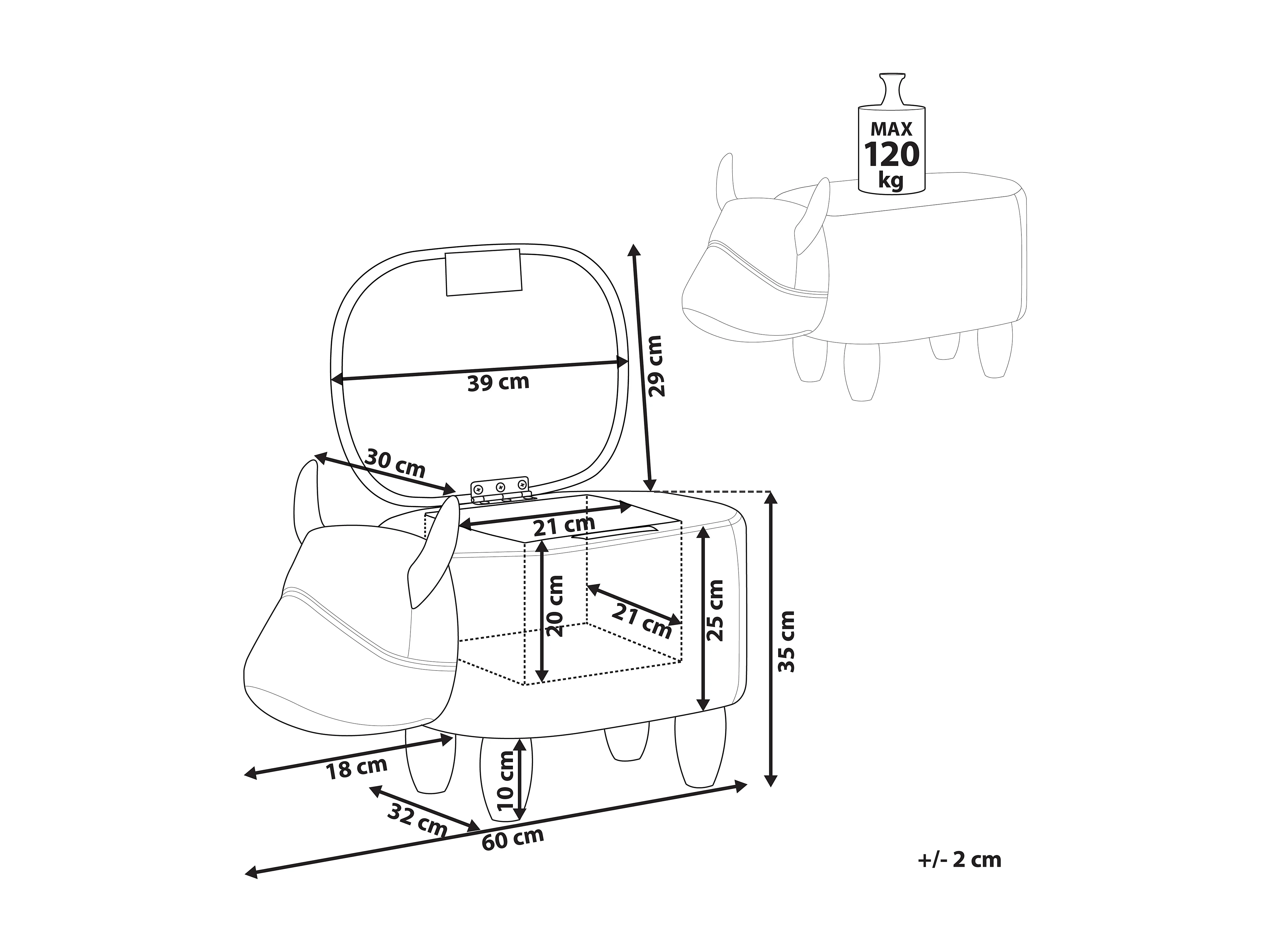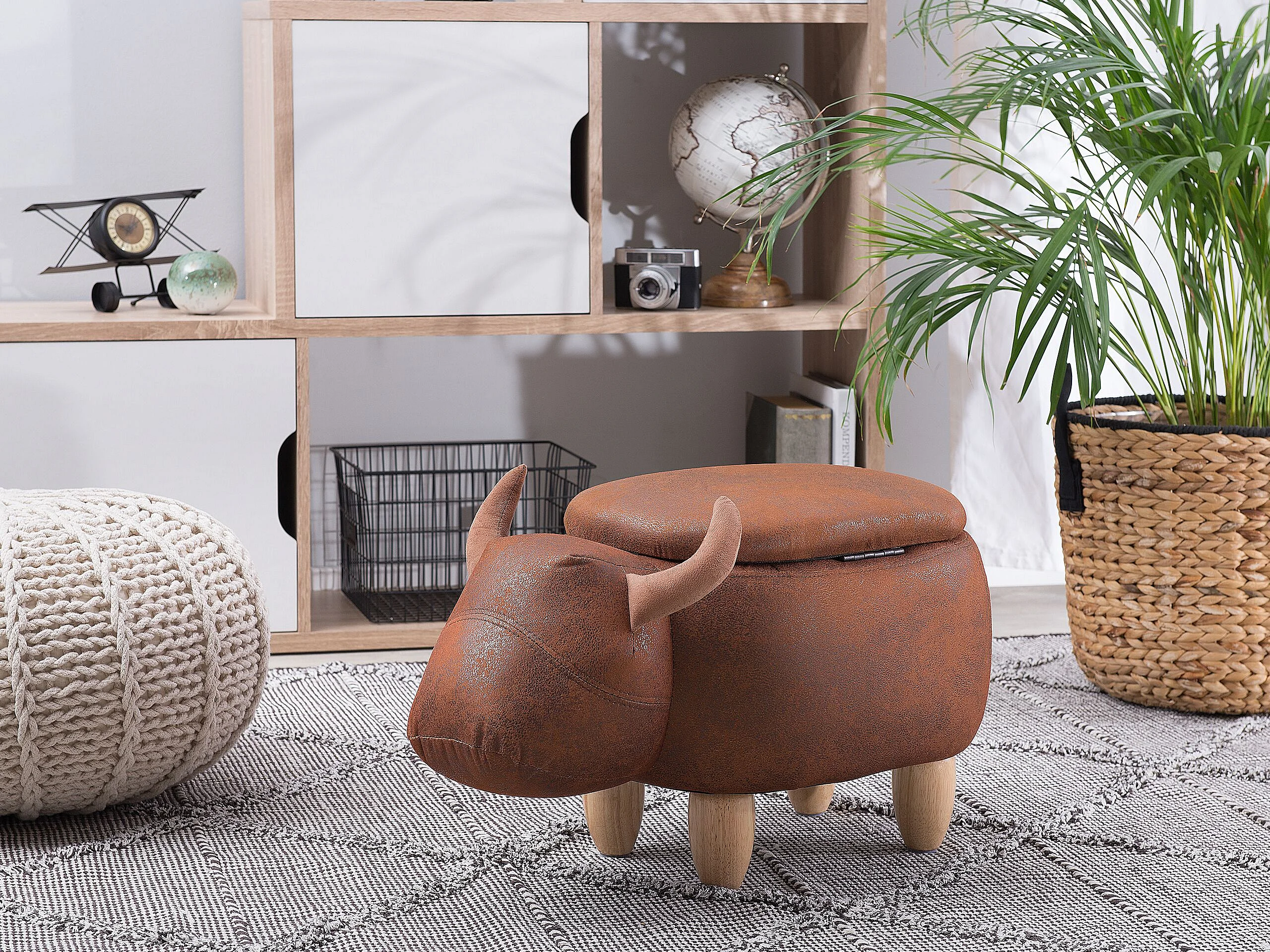 Tabouret de rangement animal COW Cuir PU Marron clair Vache